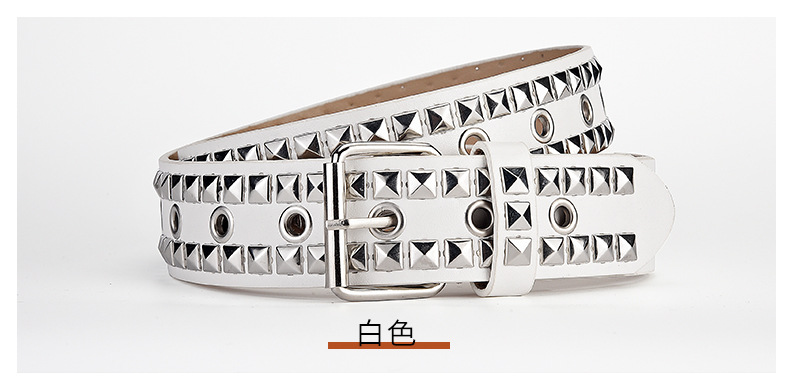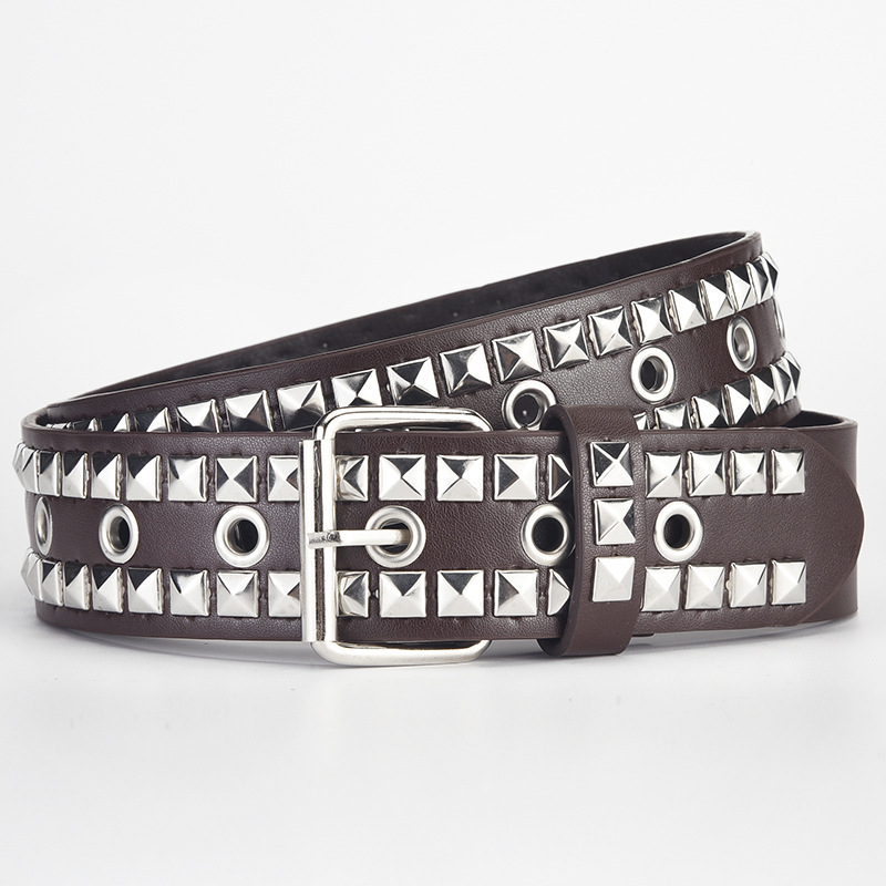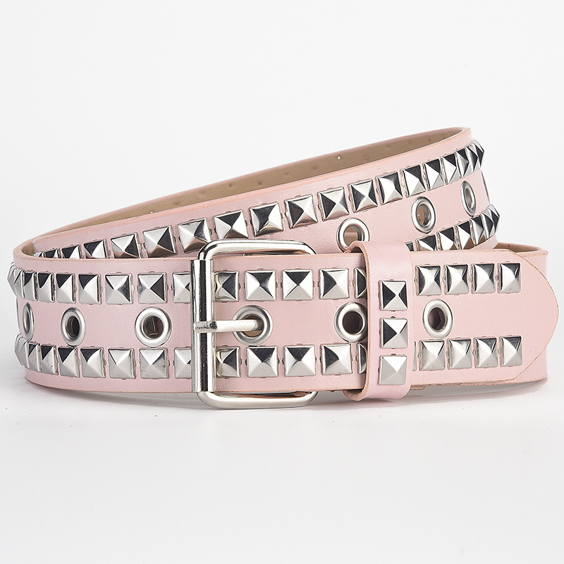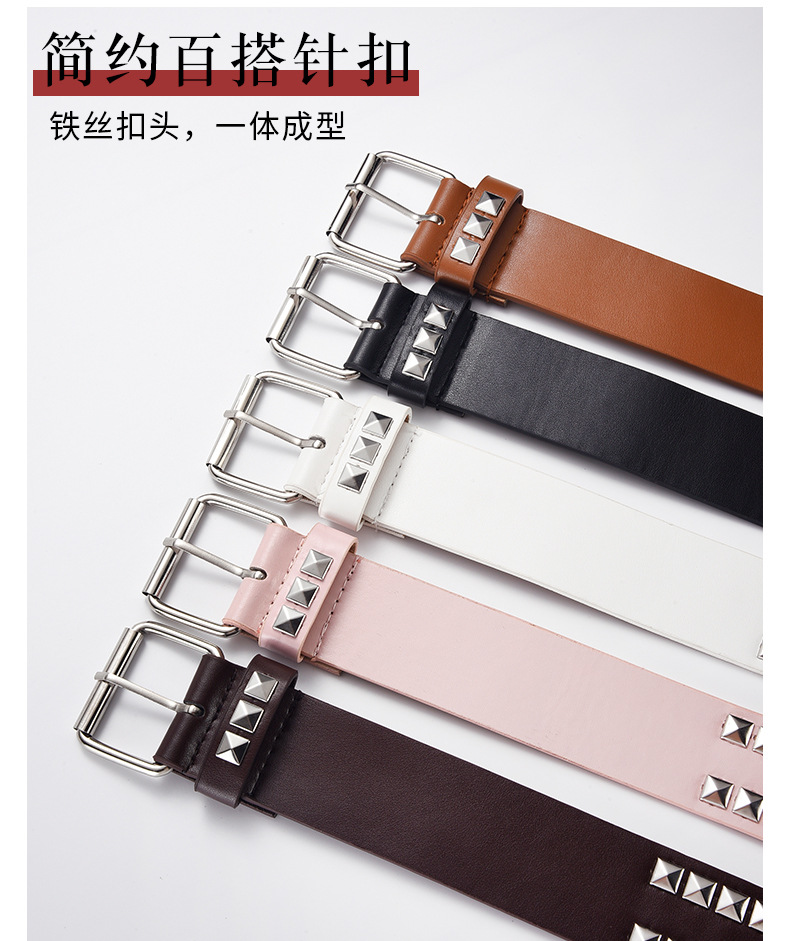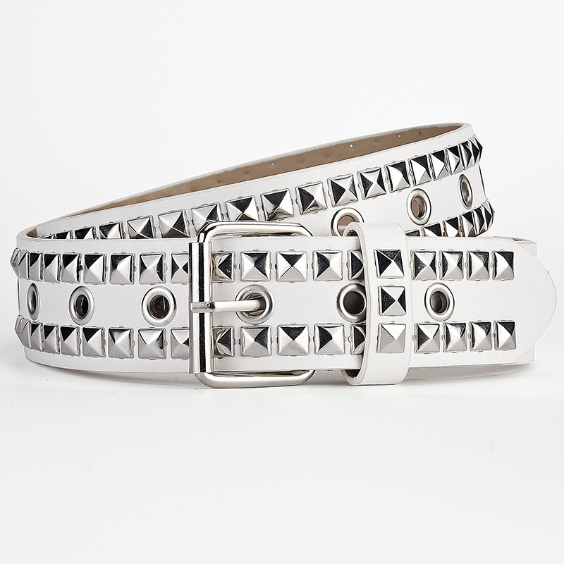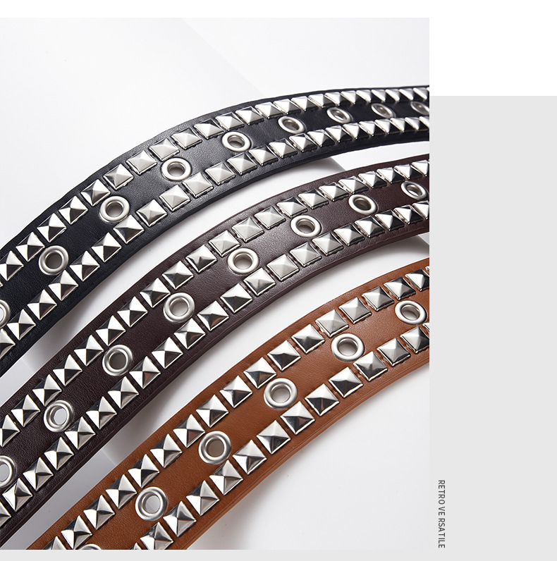 스퀘어 비드 리벳 유니섹스 에어 아이 핀 버클 PU 벨트 개성 유행 유럽과 미국 스타일 고급 감각 장식 벨트