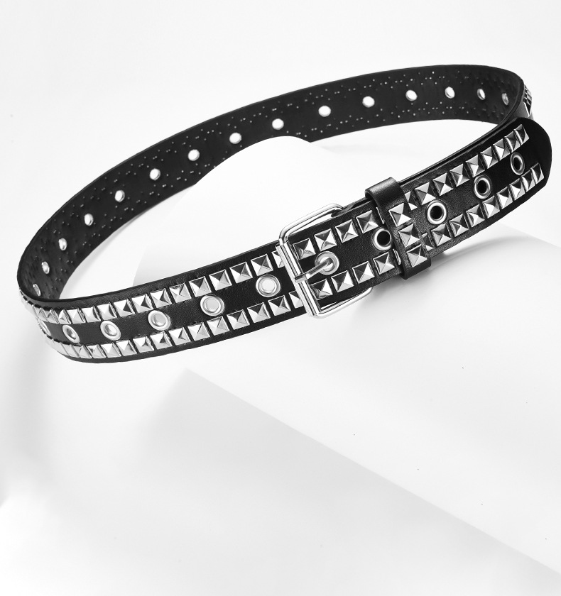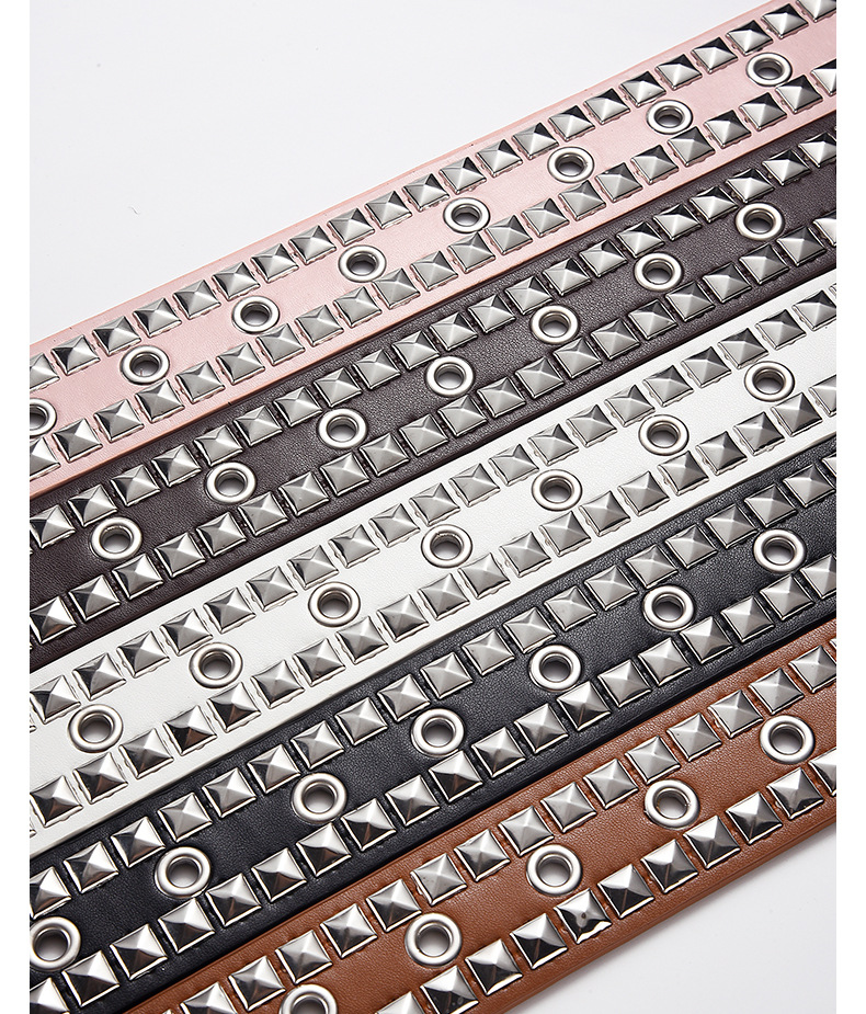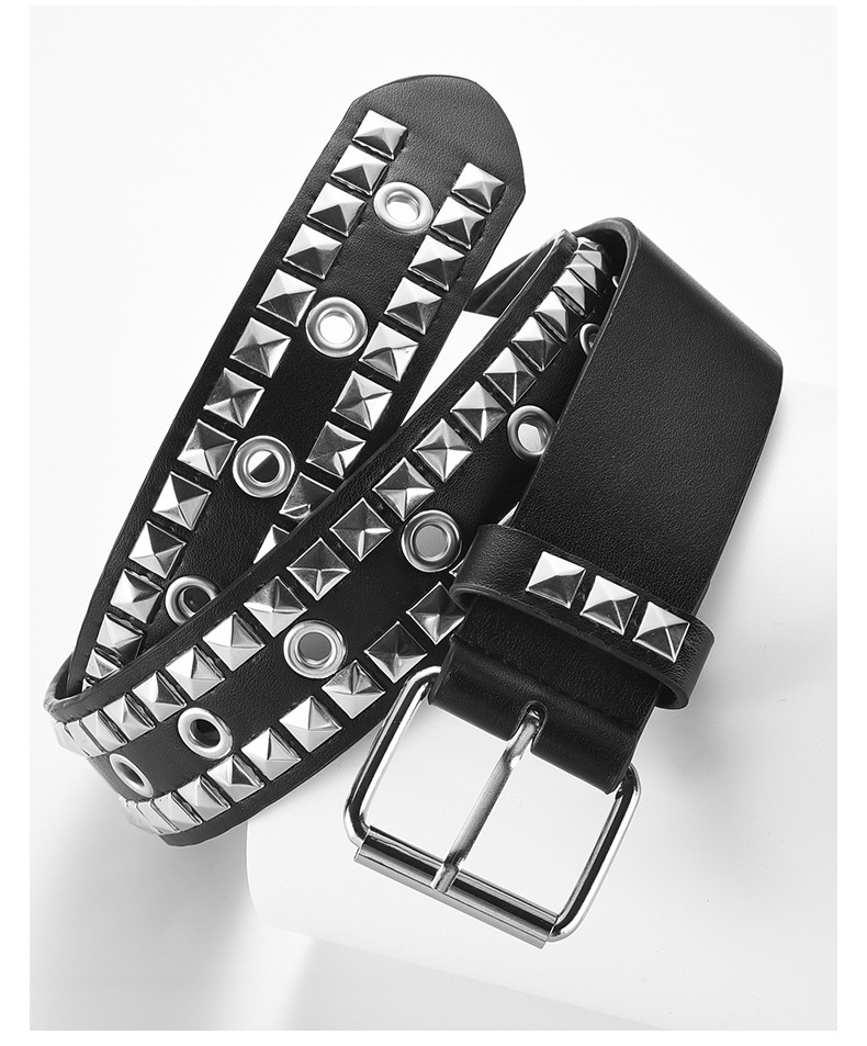스퀘어 비드 리벳 유니섹스 에어 아이 핀 버클 PU 벨트 개성 유행 유럽과 미국 스타일 고급 감각 장식 벨트스토어 가기