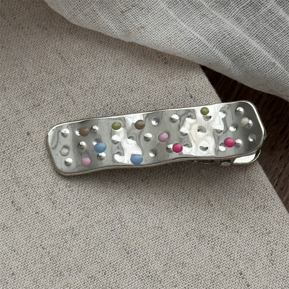 컬러풀한 물방울 모양의 은색 메탈 헤어핀 여성용 사이드 클립 물방울 클립 헤어 액세서리 앞머리 클립