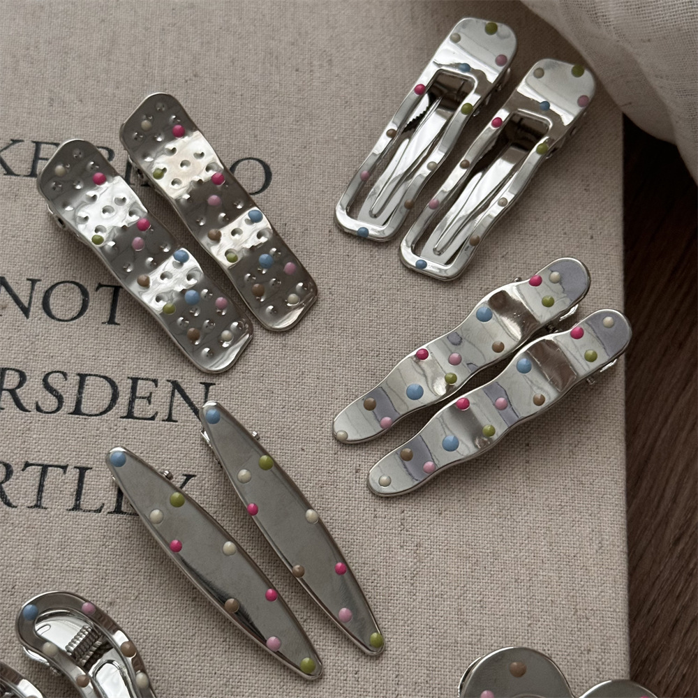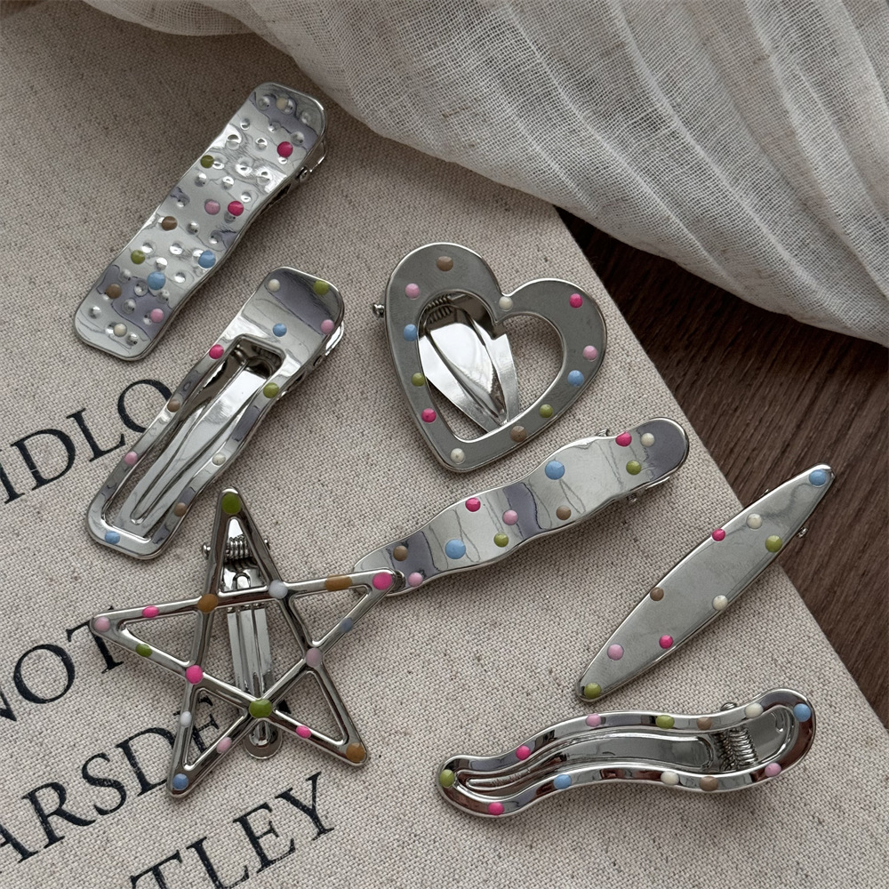컬러풀한 물방울 모양의 은색 메탈 헤어핀 여성용 사이드 클립 물방울 클립 헤어 액세서리 앞머리 클립스토어 가기