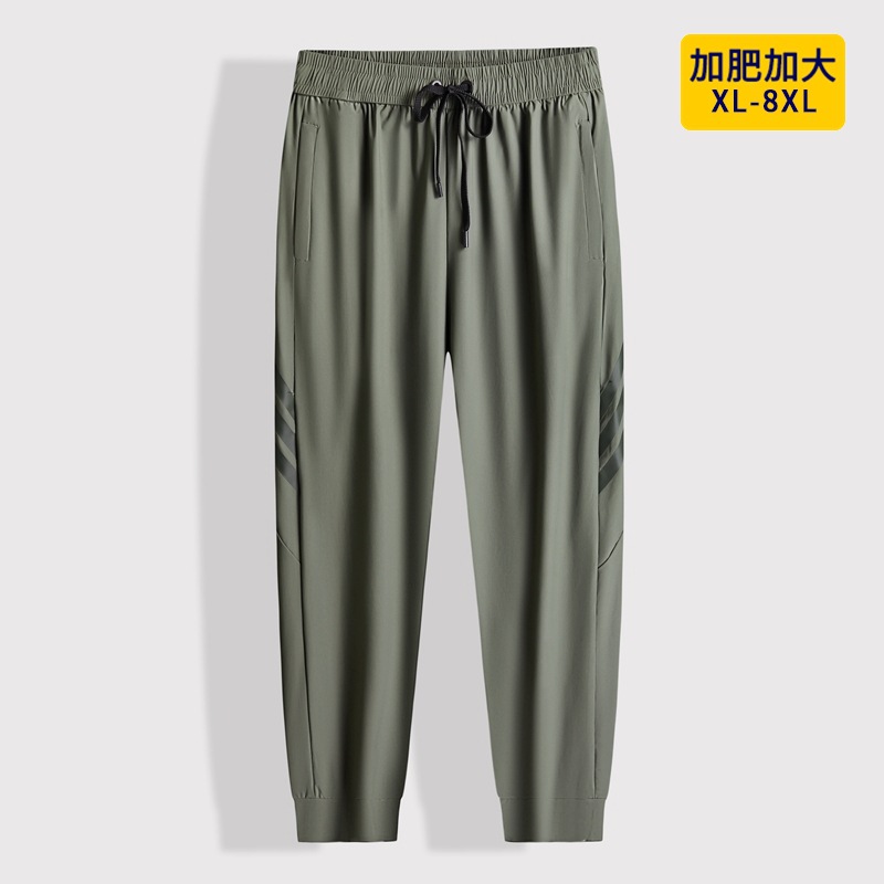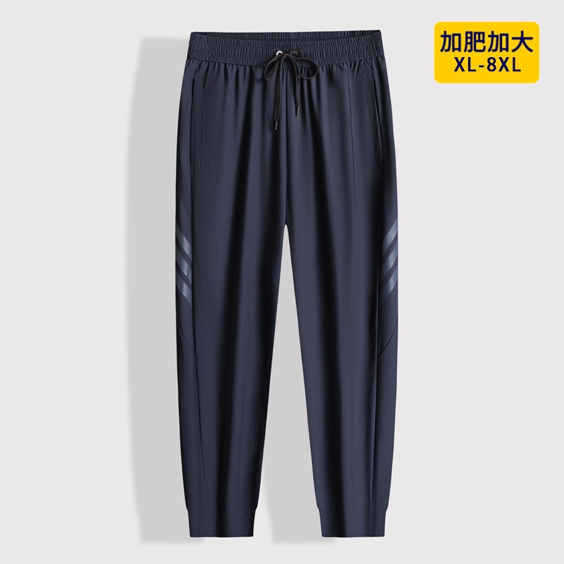 뚱뚱한 얼음 실크 바지 남자 여름 얇은 느슨한 플러스 사이즈 빠른 건조 바지 플러스 시원한 발 트렌디 스포츠 바지