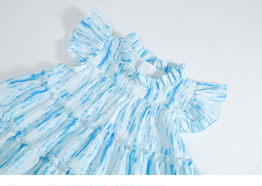 [품절, 교환불가] MDD 여아 작은 플라잉 슬리브 드레스, 케이크 스커트, 아동 여아 A라인 스커트, 아동복스토어 가기