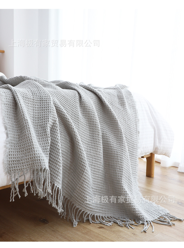특별 제공 노르딕 솔리드 컬러 작은 와플 니트 캐주얼 담요 사무실 낮잠 담요 홈스테이 소파 담요 침대 엔드 담요