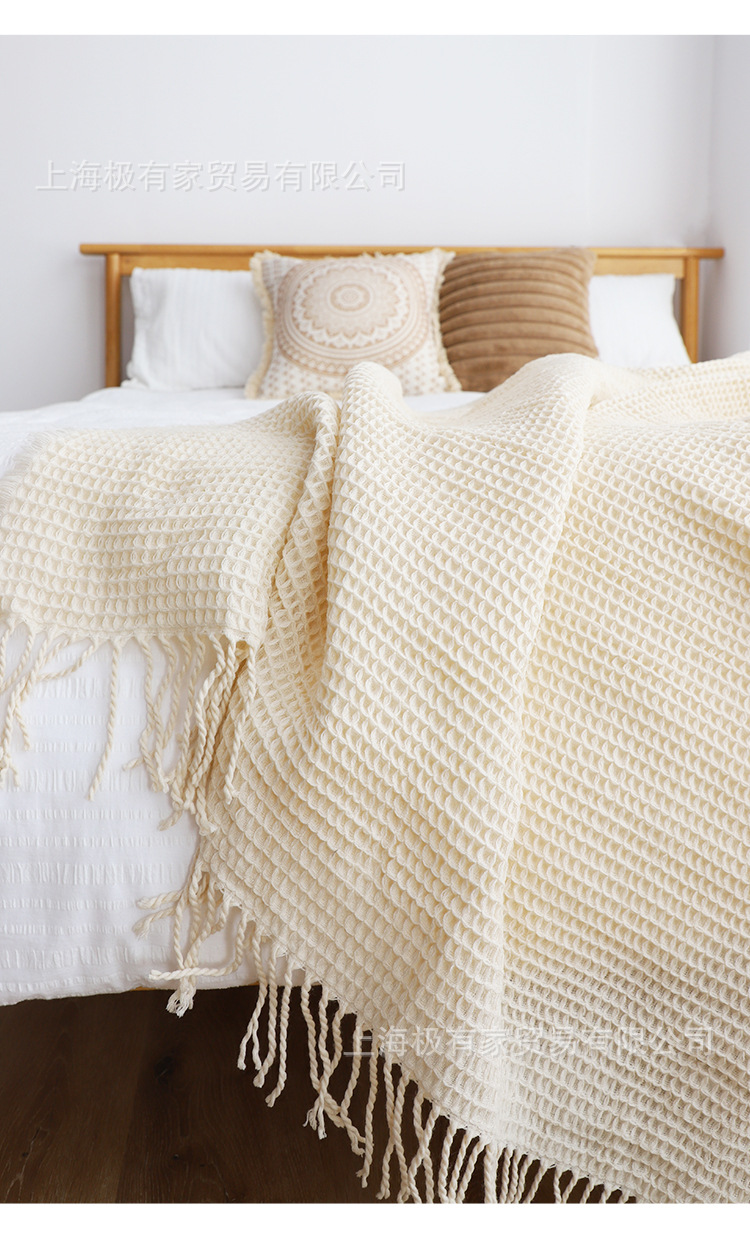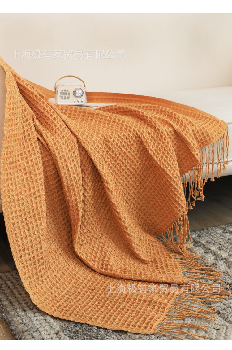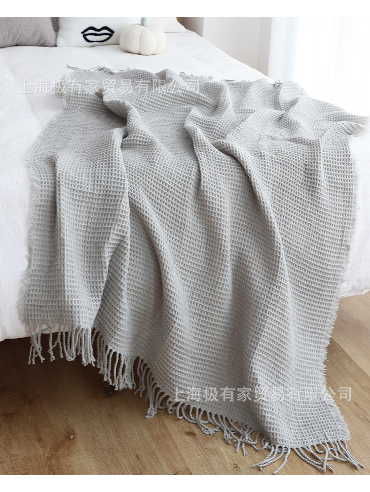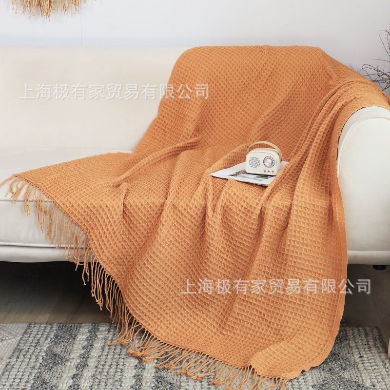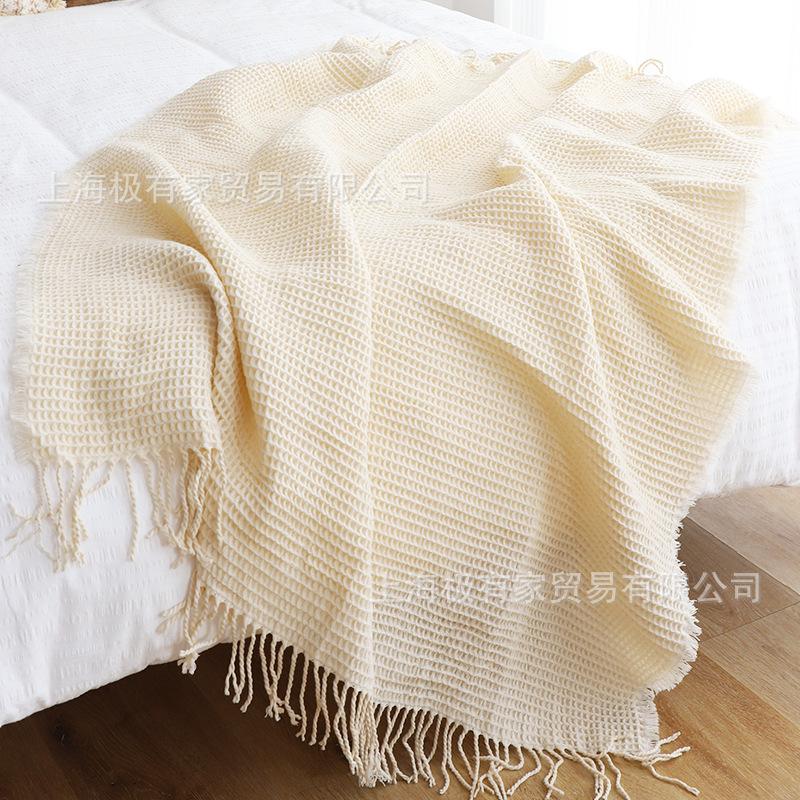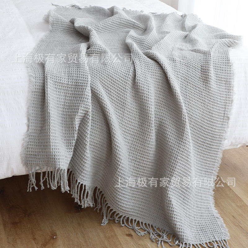 특별 제공 노르딕 솔리드 컬러 작은 와플 니트 캐주얼 담요 사무실 낮잠 담요 홈스테이 소파 담요 침대 엔드 담요스토어 가기