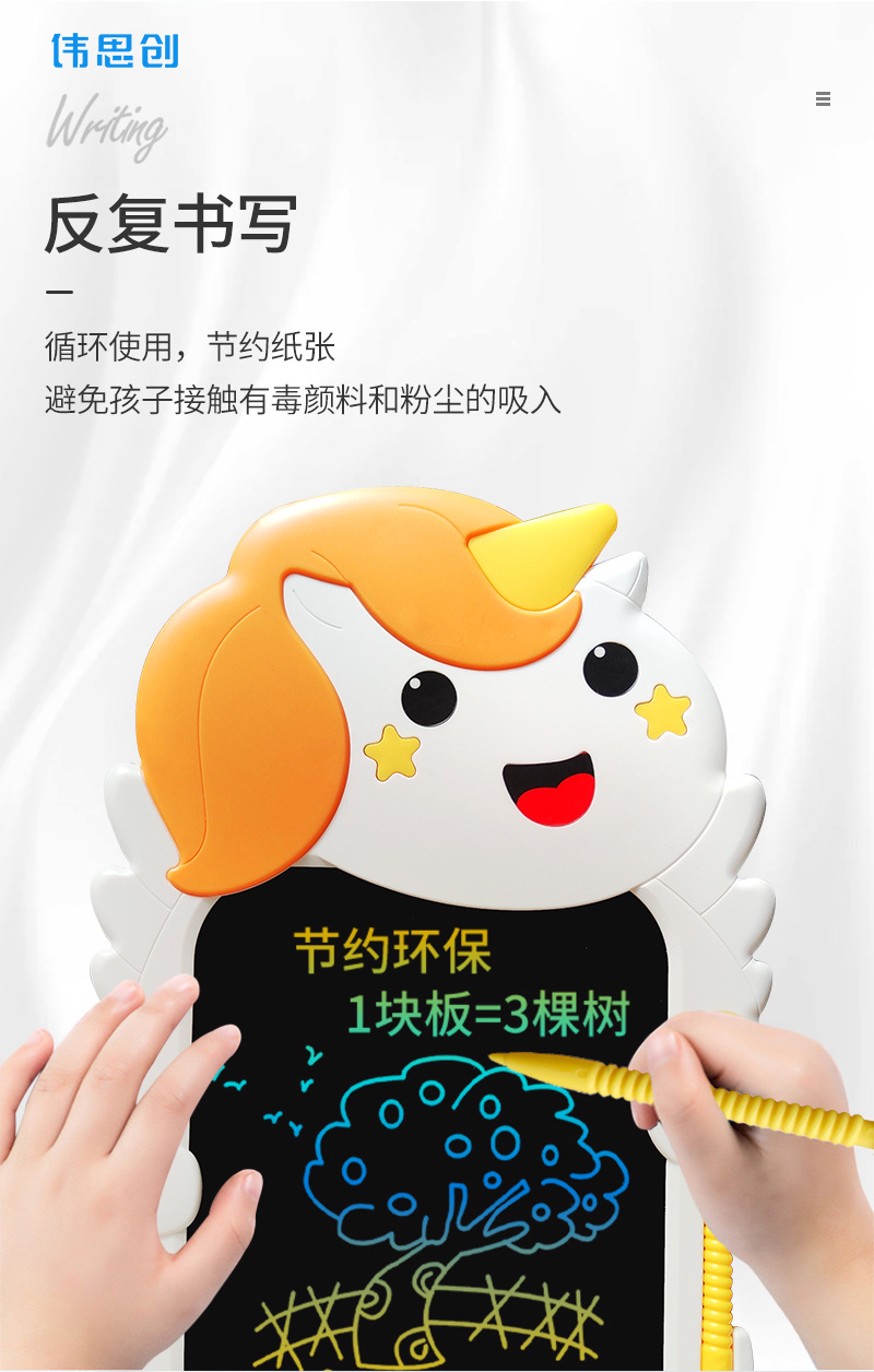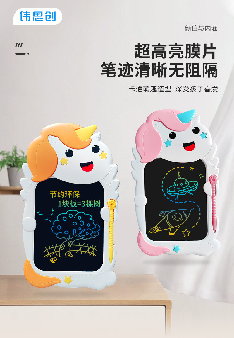 새로운 만화 유니콘 동물 어린이 드로잉 보드 조기 교육 장난감 LCD 필기 보드 LCD