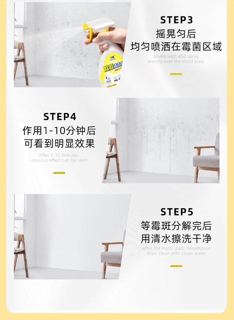 Quanyao 금형 제거 스프레이 벽 타일 금형 제거 에이전트 금형 제거 금형 청소기 가정용 주방 및 욕실 금형 제거