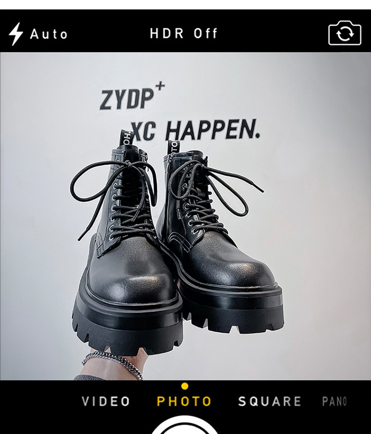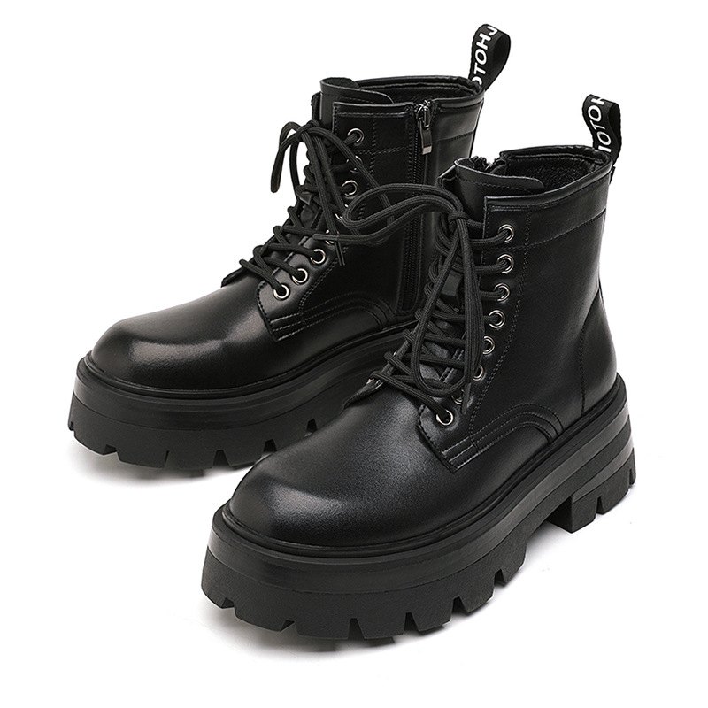 유럽과 미국의 두꺼운 밑창 높은 마틴 부츠 남성용 트렌디 사이드 지퍼 오토바이 툴링 영국 스타일 하이 탑 블랙 가죽 부츠스토어 가기