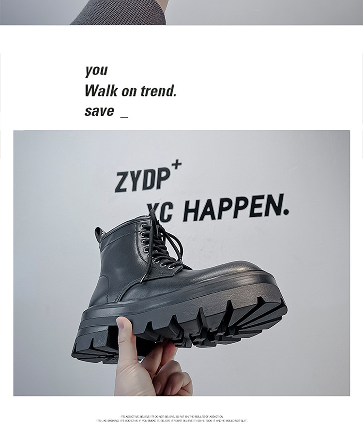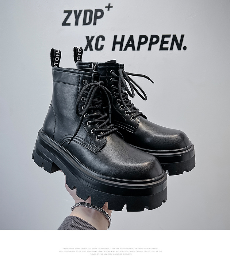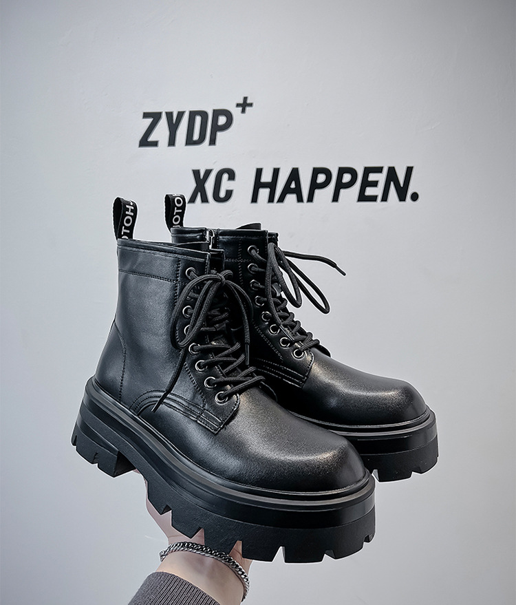 유럽과 미국의 두꺼운 밑창 높은 마틴 부츠 남성용 트렌디 사이드 지퍼 오토바이 툴링 영국 스타일 하이 탑 블랙 가죽 부츠