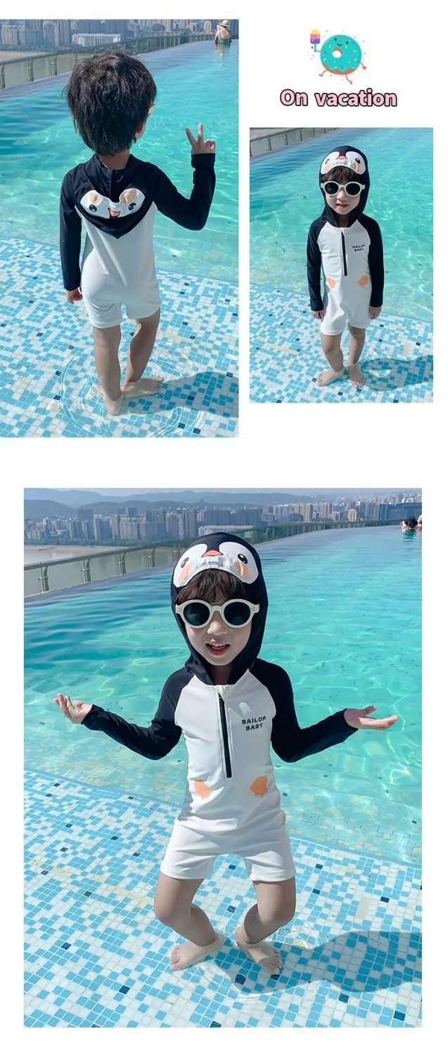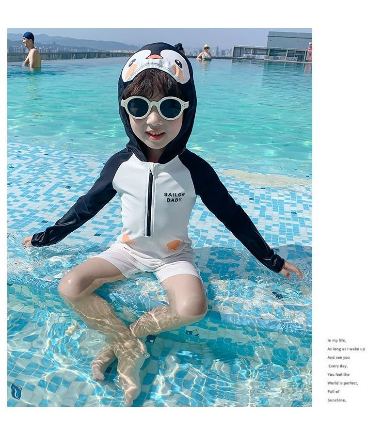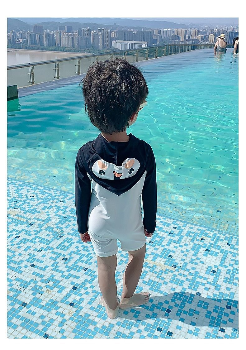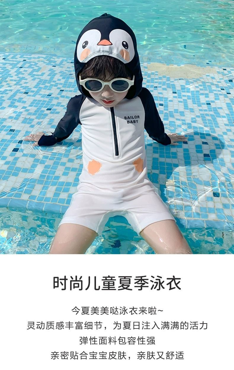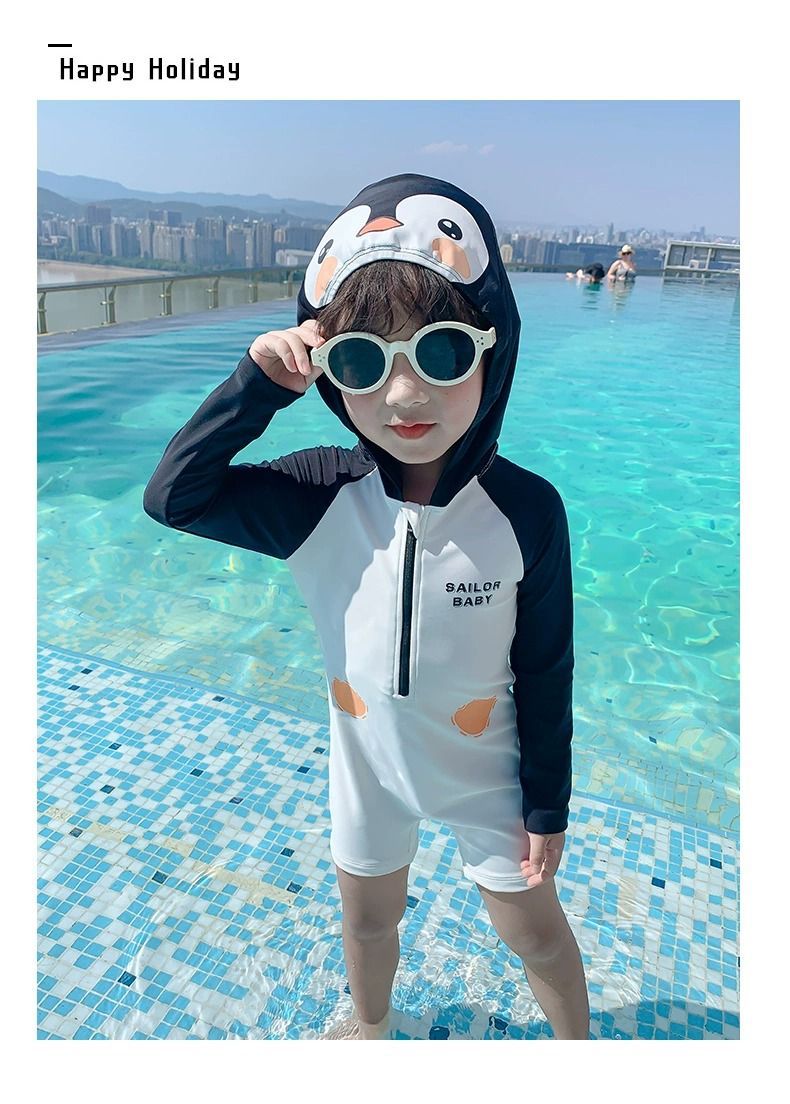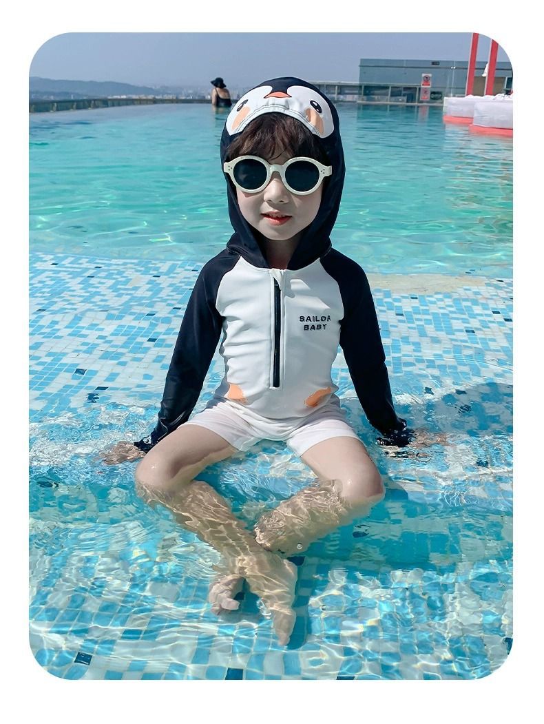 남아 수영복 2026 여름 신상 남아 아기 패셔너블한 아동용 후드형 인터넷 인기 패션 원피스 수영복