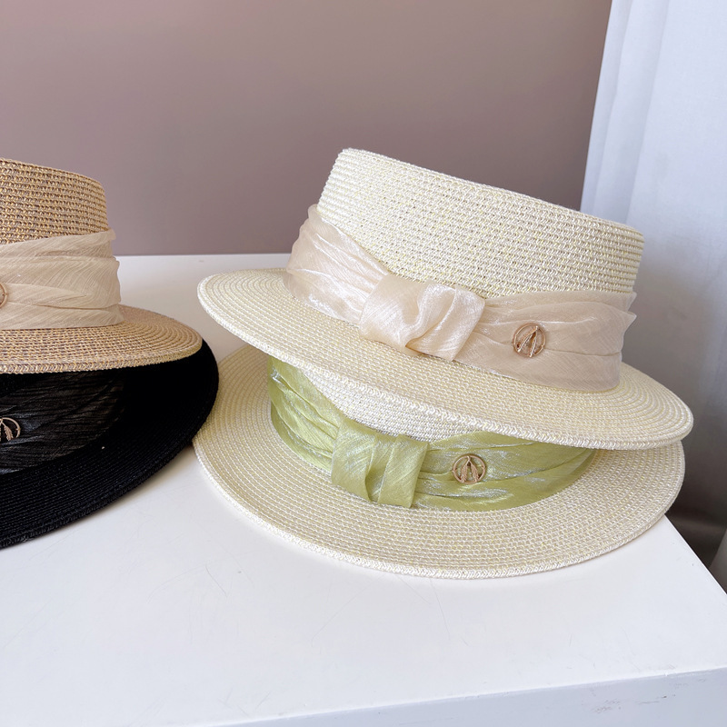 Yi Yi 럭셔리 유리 원사 활 플랫 탑 모자 여성의 여름 선 스크린 모자 주름 플랫 모자 예술적 태양 모자스토어 가기