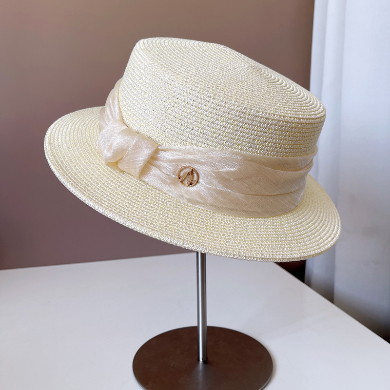 Yi Yi 럭셔리 유리 원사 활 플랫 탑 모자 여성의 여름 선 스크린 모자 주름 플랫 모자 예술적 태양 모자