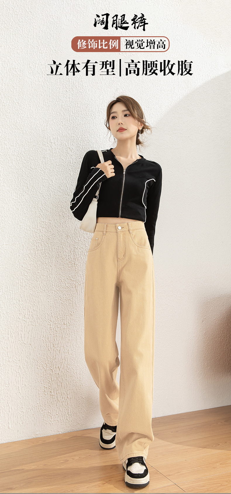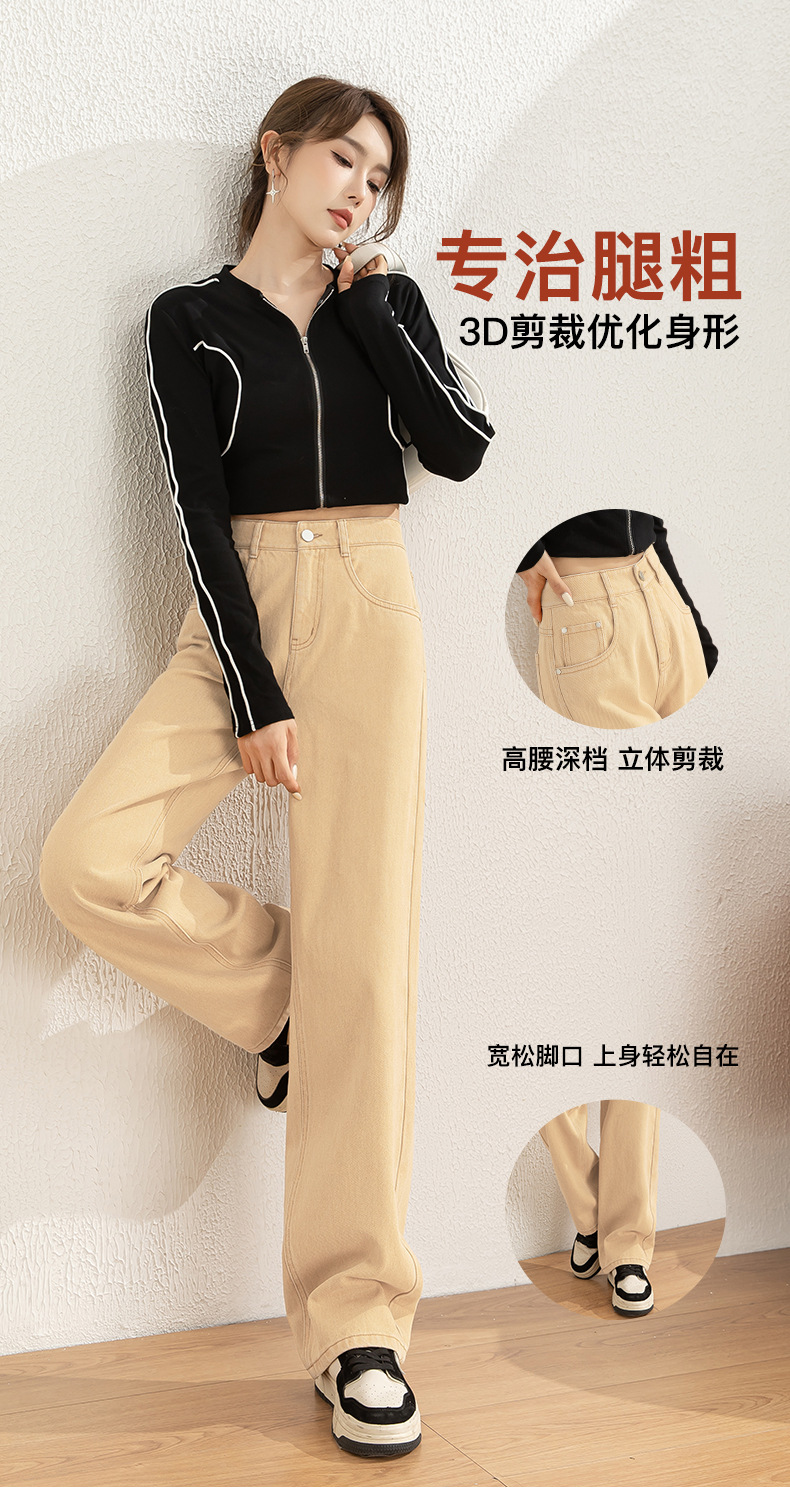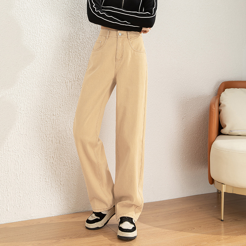 Maillard 높은 허리 유행 간단한 순면 청바지 여성 한국 스타일 느슨한 편안한 캐주얼 와이드 다리 8053 바지스토어 가기
