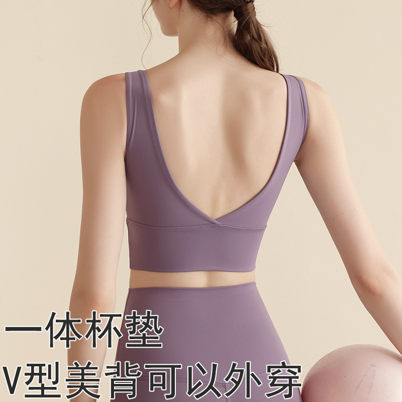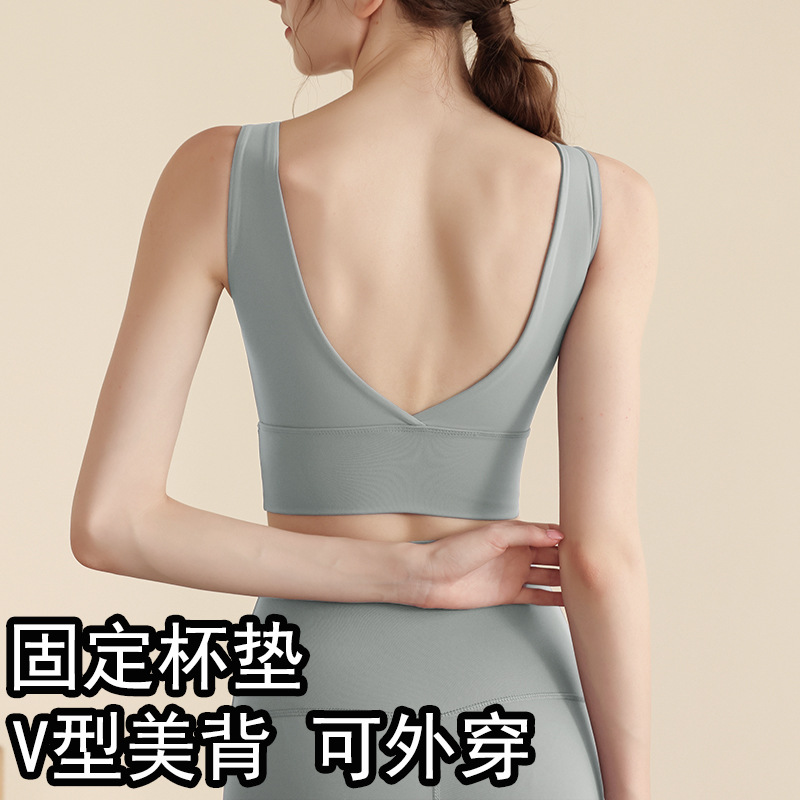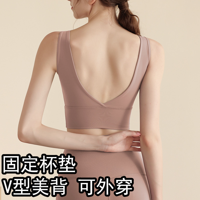 원피스 컵 스포츠 속옷 V 자형 뷰티 조끼 고정 컵 달리기 피트니스 충격 방지 스포츠 브라 요가 의류 세트스토어 가기