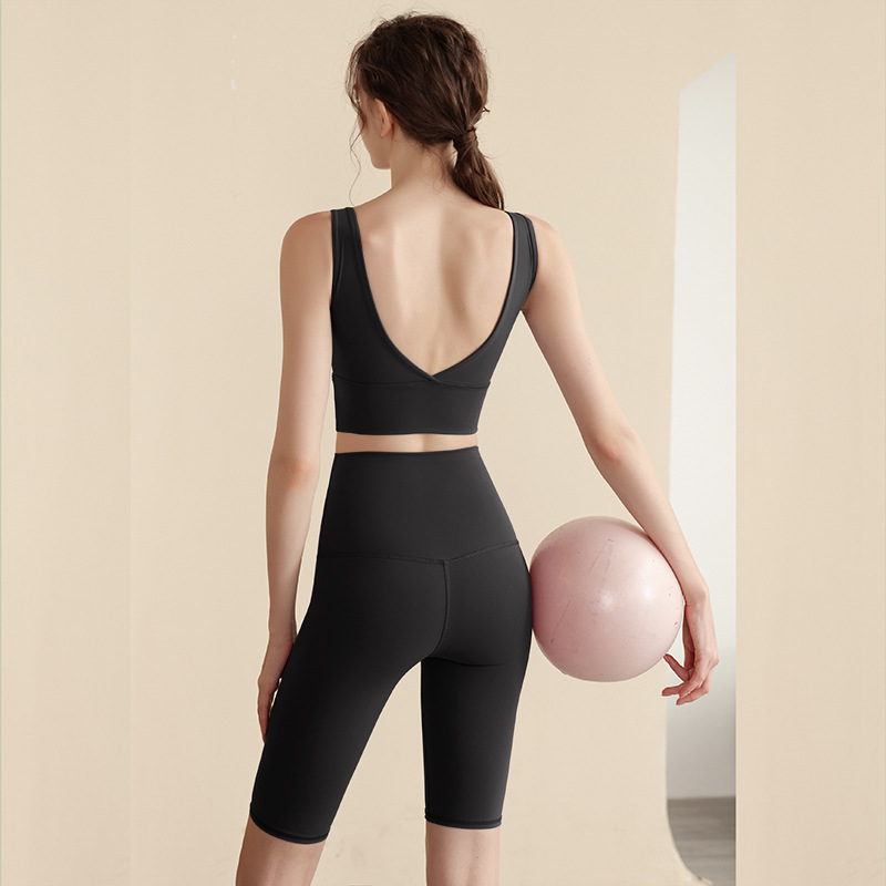 원피스 컵 스포츠 속옷 V 자형 뷰티 조끼 고정 컵 달리기 피트니스 충격 방지 스포츠 브라 요가 의류 세트