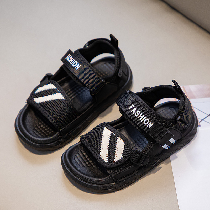여자 샌들 오픈 발가락 2024 새로운 여름 통기성 경량 에어 쿠션 소프트 단독 미들 및 빅 키즈 학생 어린이 비치 슈즈