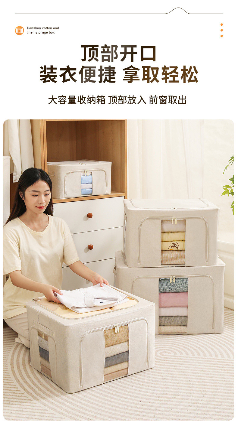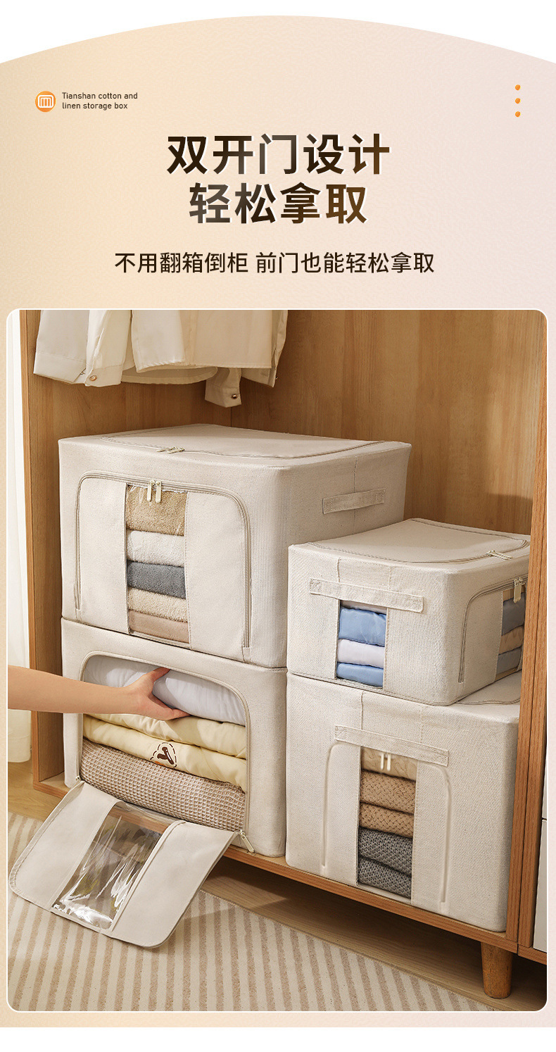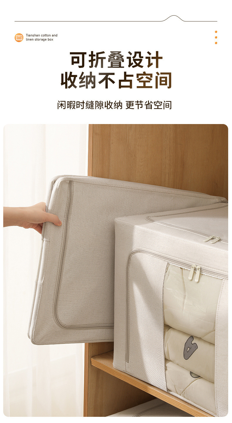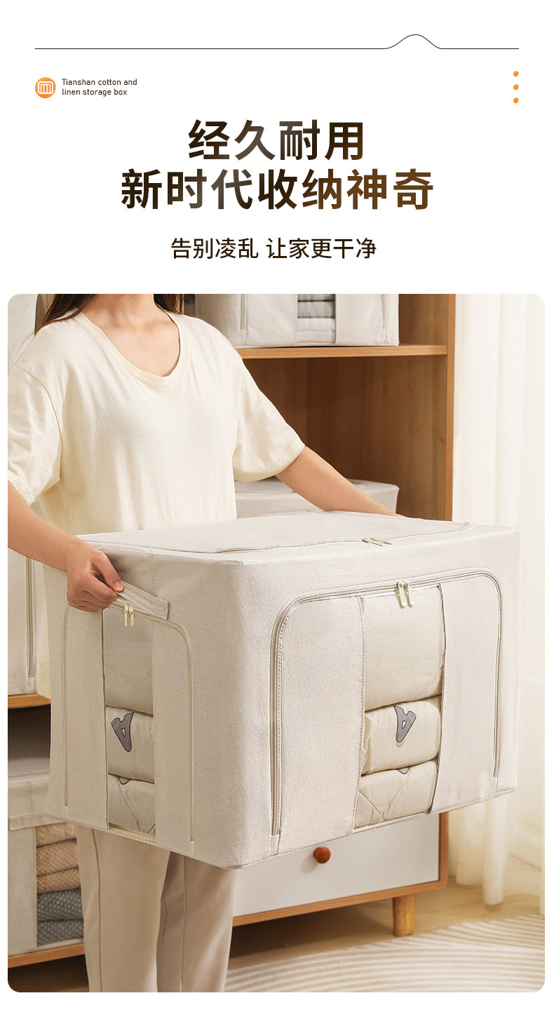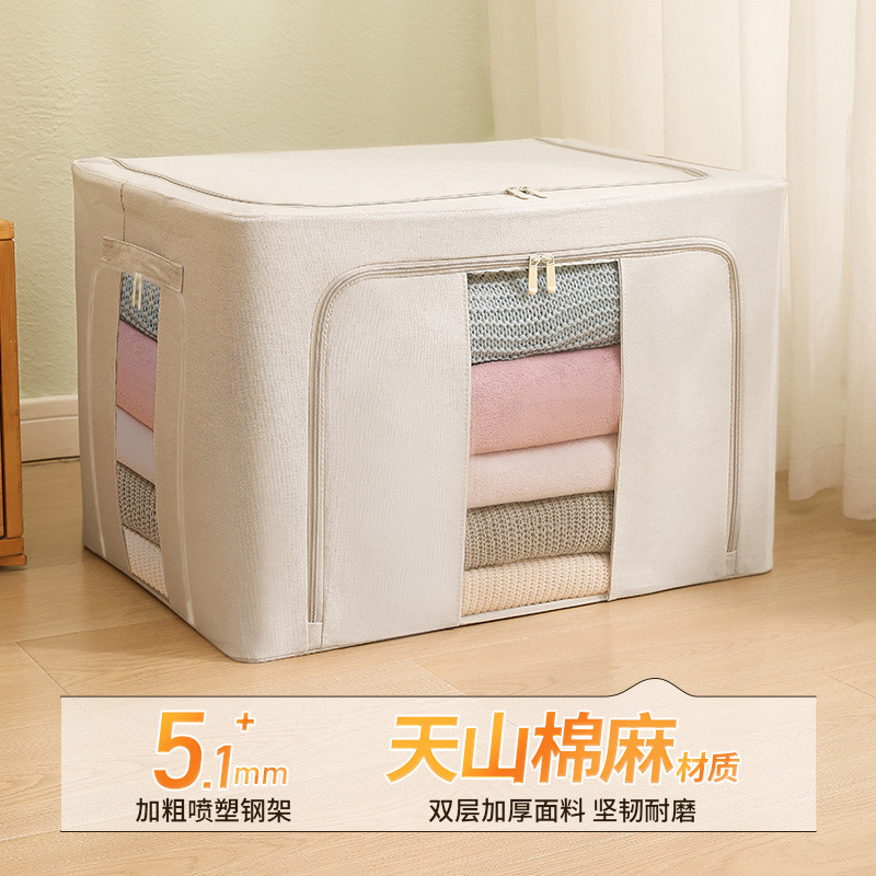 천산 면과 린넨 소재 가정용 수납함 두꺼운 천 소재 의류용 이중 지퍼 접이식 옷장 방수 및 방습스토어 가기