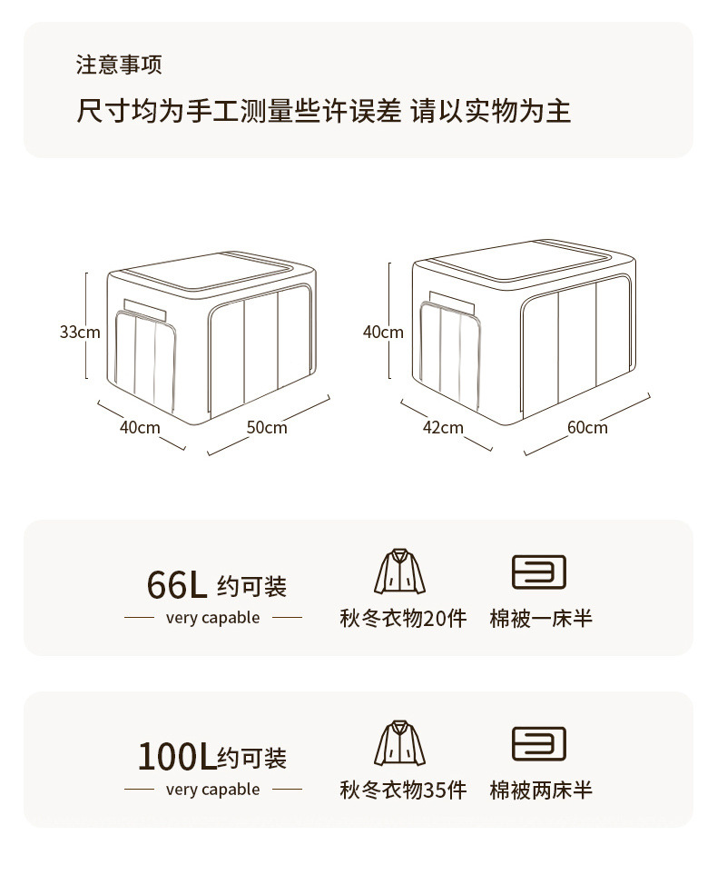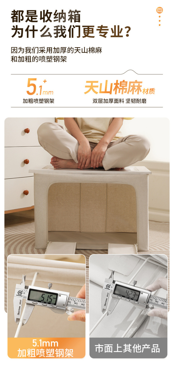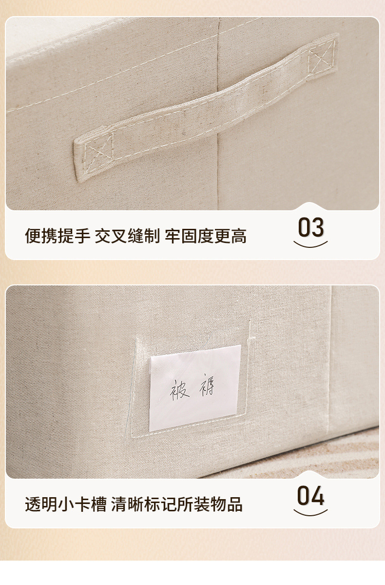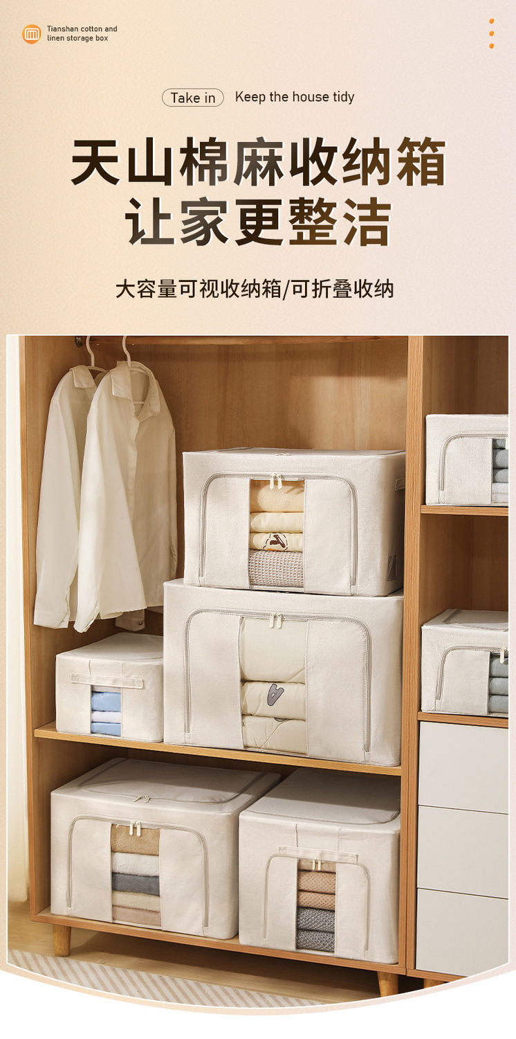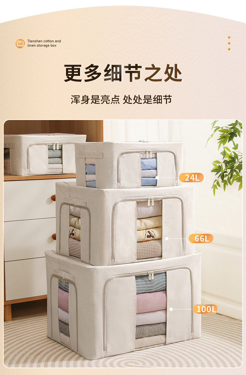 천산 면과 린넨 소재 가정용 수납함 두꺼운 천 소재 의류용 이중 지퍼 접이식 옷장 방수 및 방습스토어 가기