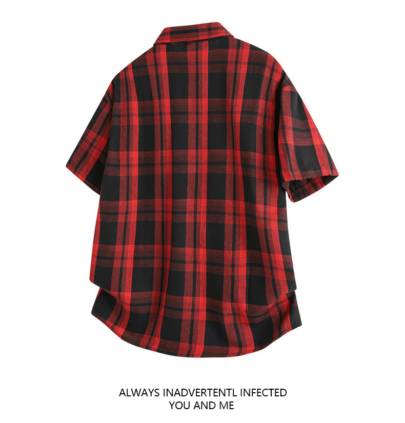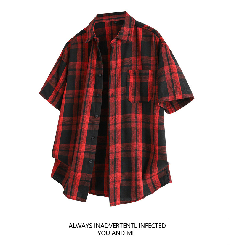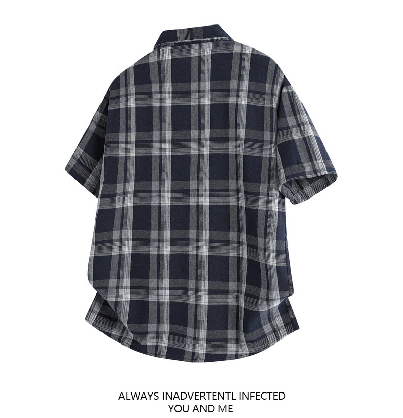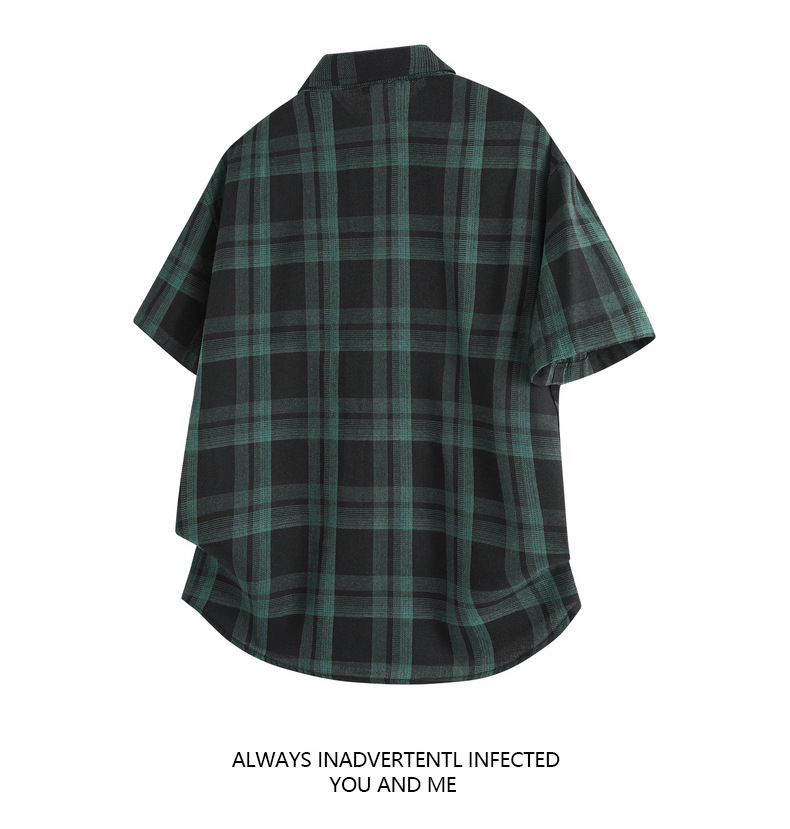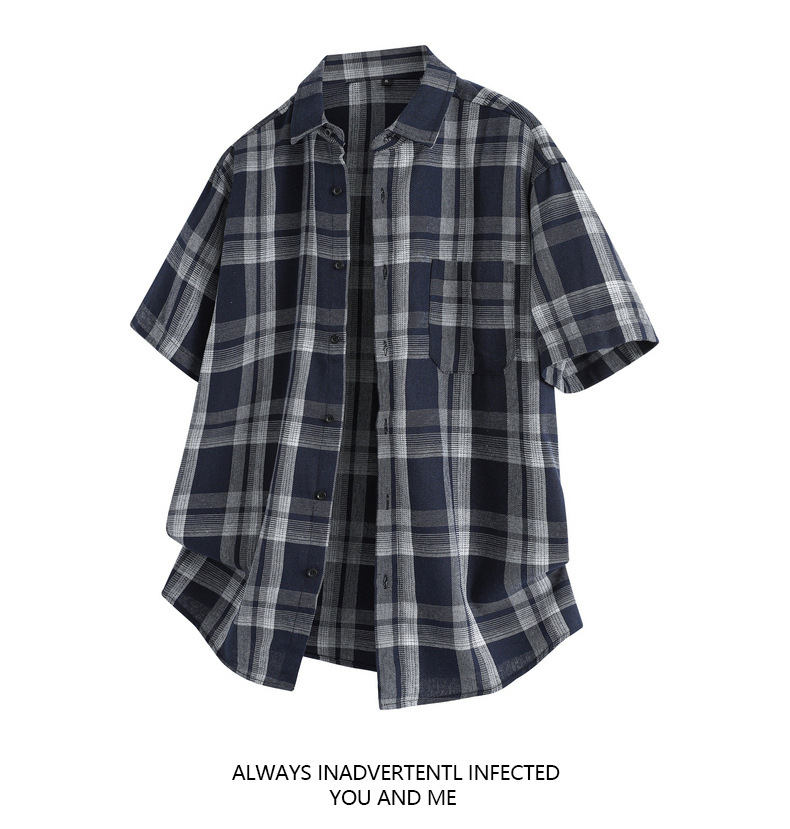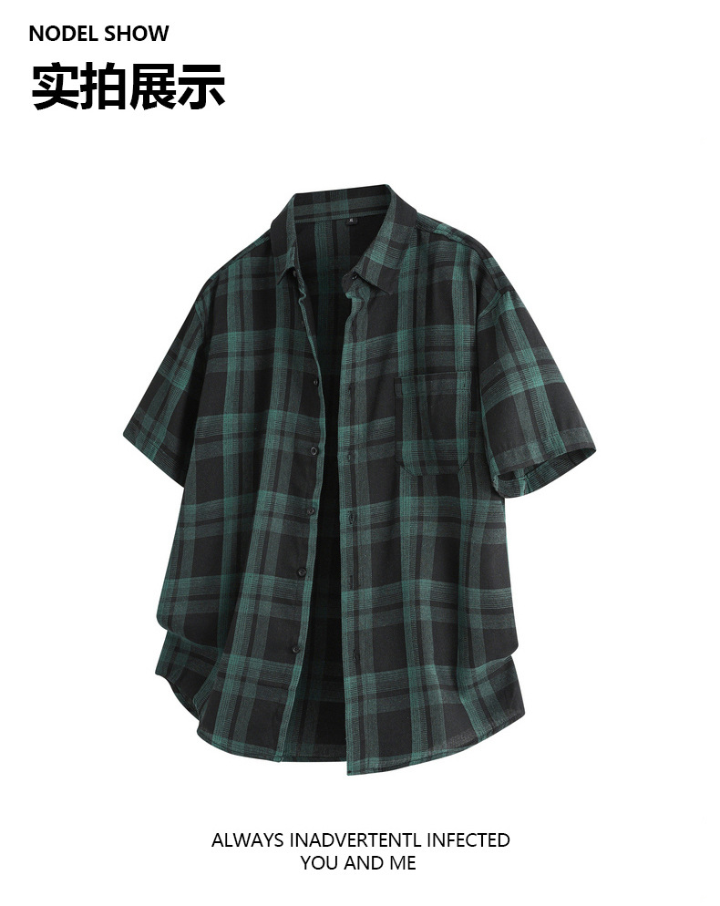 격자 무늬 반팔 셔츠 남자의 느슨한 외부 포켓 디자인 한국 유행 잘 생긴 캐주얼 올 매치 셔츠