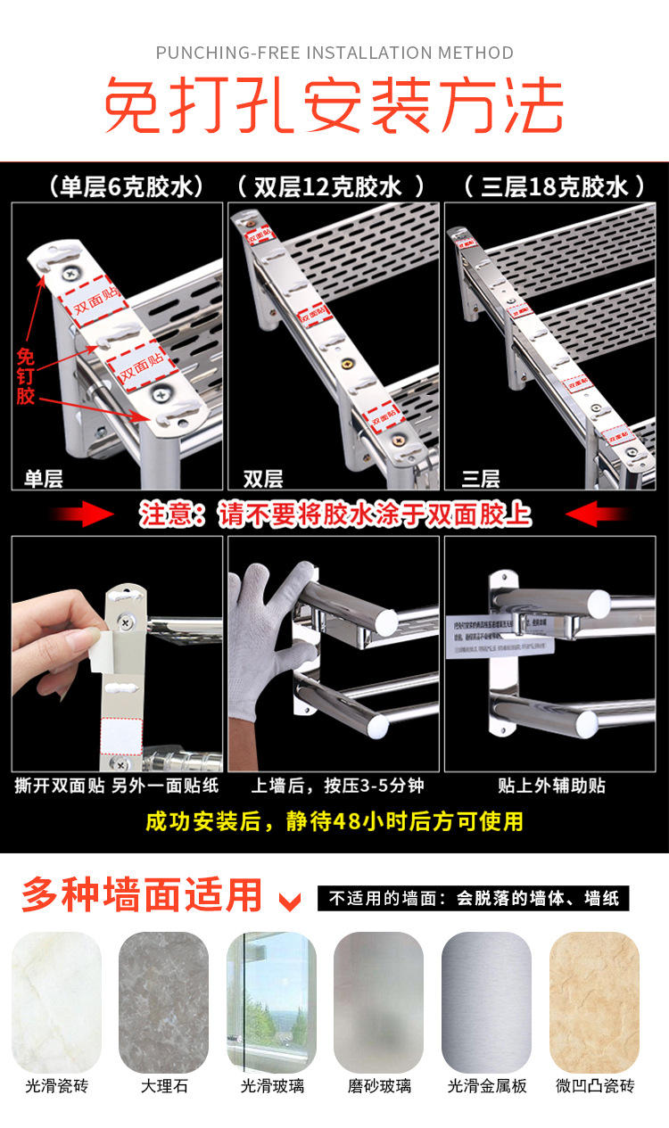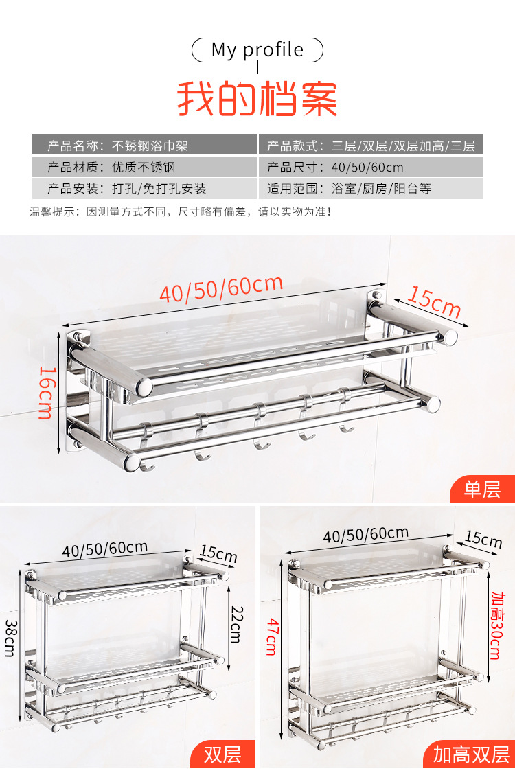 국경 간 유럽 욕실 스테인레스 스틸 타월 랙 보관 랙 욕실 수건 선반 화장실 보관 랙 벽 교수형