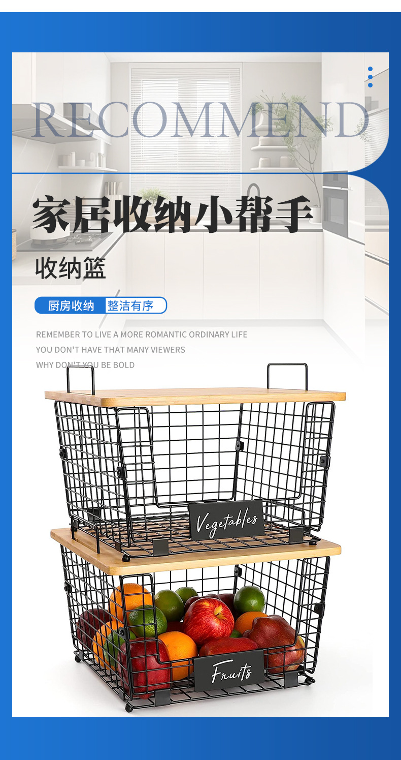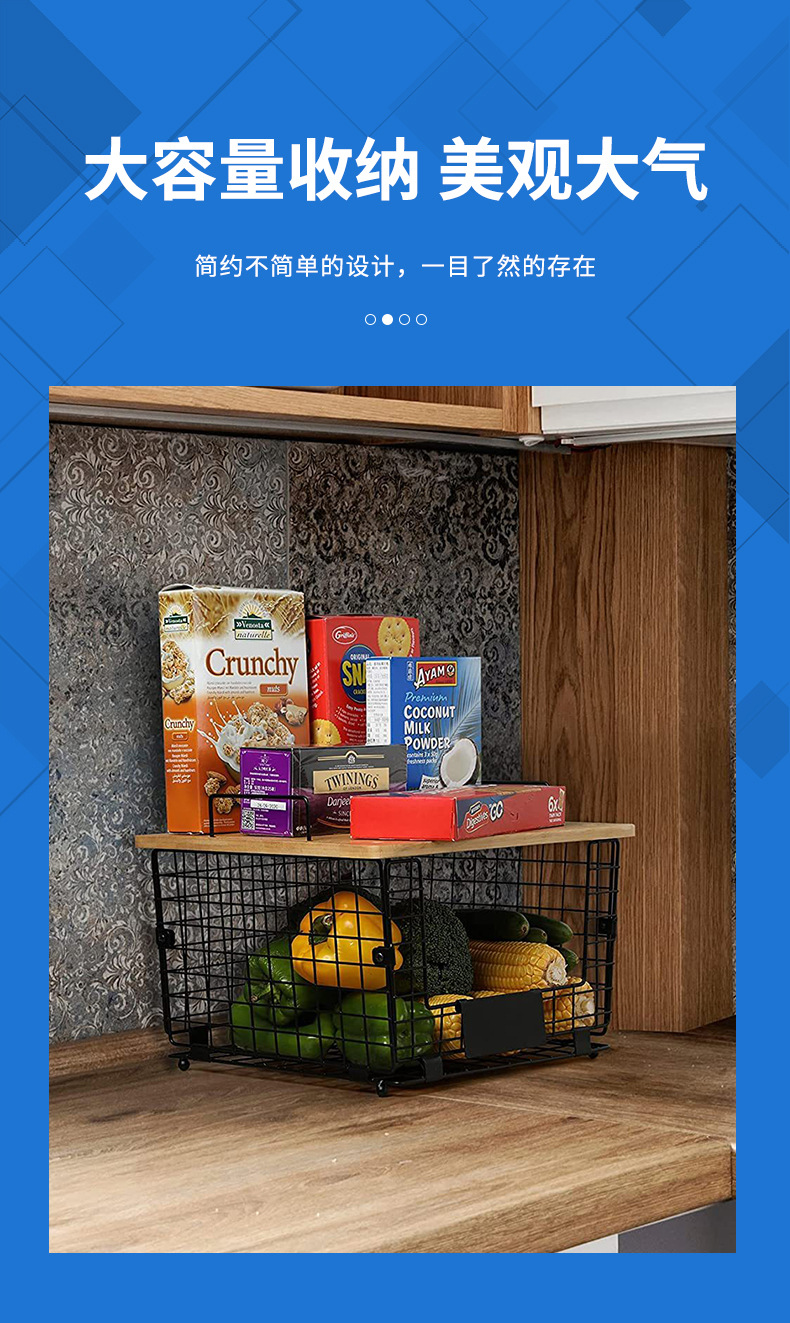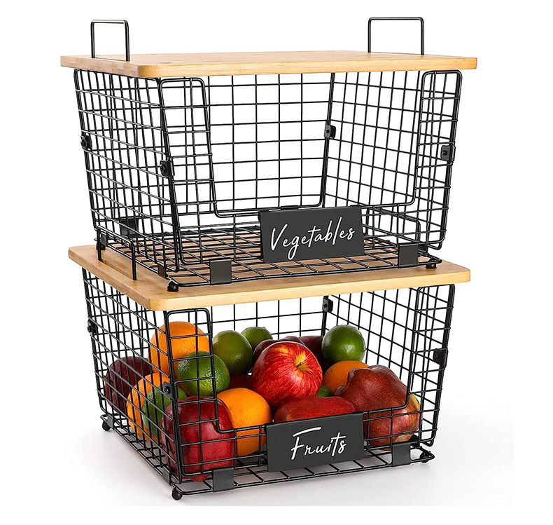 국경 간 주방 나무 과일 바구니 이동식 조리대 랙 스낵 조미료 야채 저장 바구니 도매스토어 가기