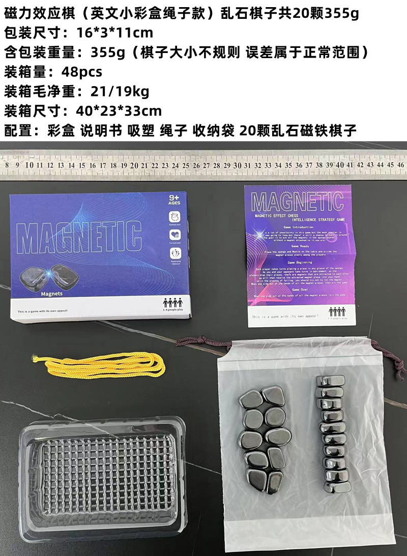 磁力效应棋(英文小彩盒绳子款)乱石棋子共20颗355g