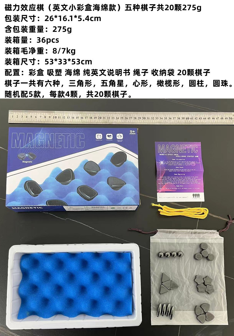 磁力效应棋(英文小彩盒海绵款)五种棋子共20颗275g