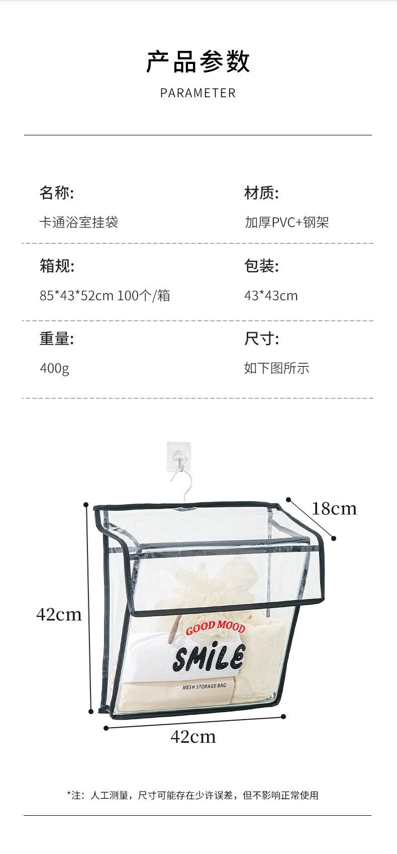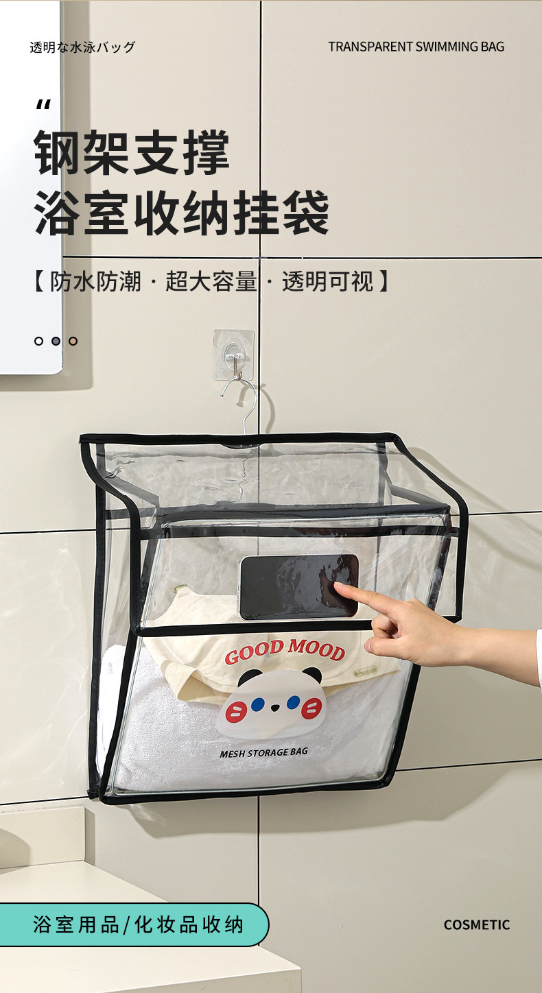 접이식 욕실 교수형 가방 가정용 욕실 벽걸이 투명 보관 가방 대용량 의류 방수 보관 가방