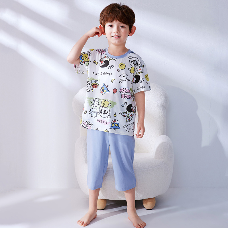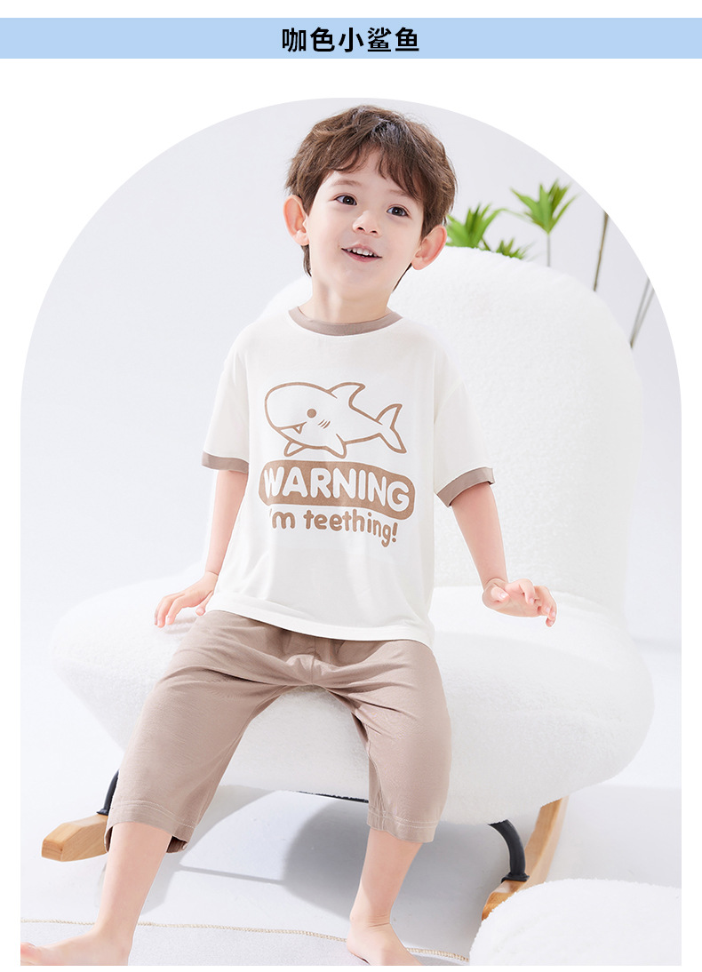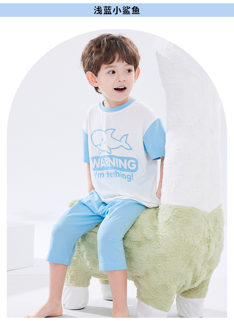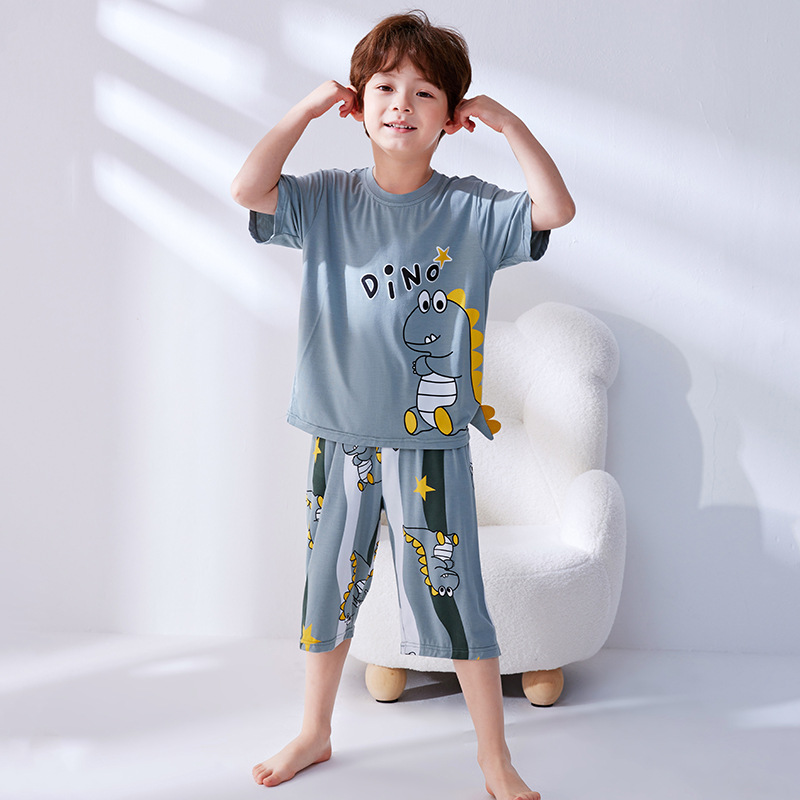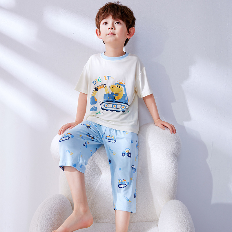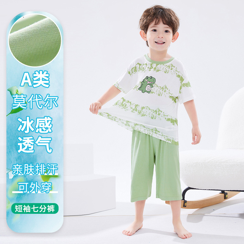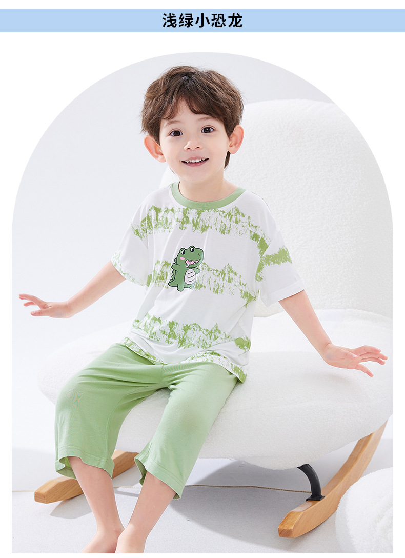 2025 어린이 잠옷 소년의 여름 얇은 모달 소년의 아기의 반팔 카프리 바지 유코시 홈 옷스토어 가기