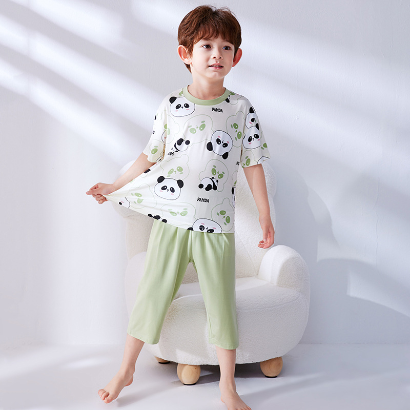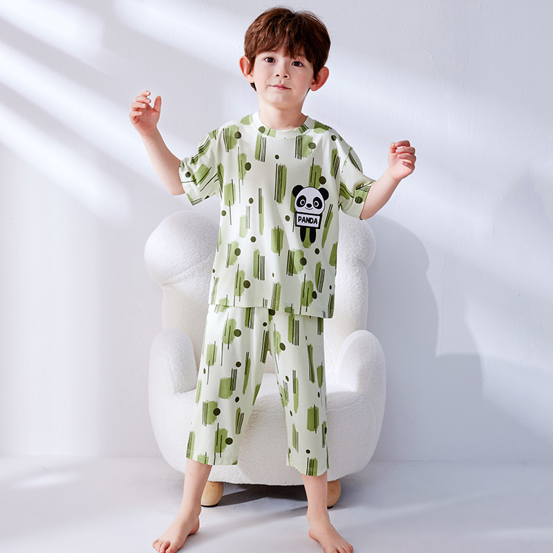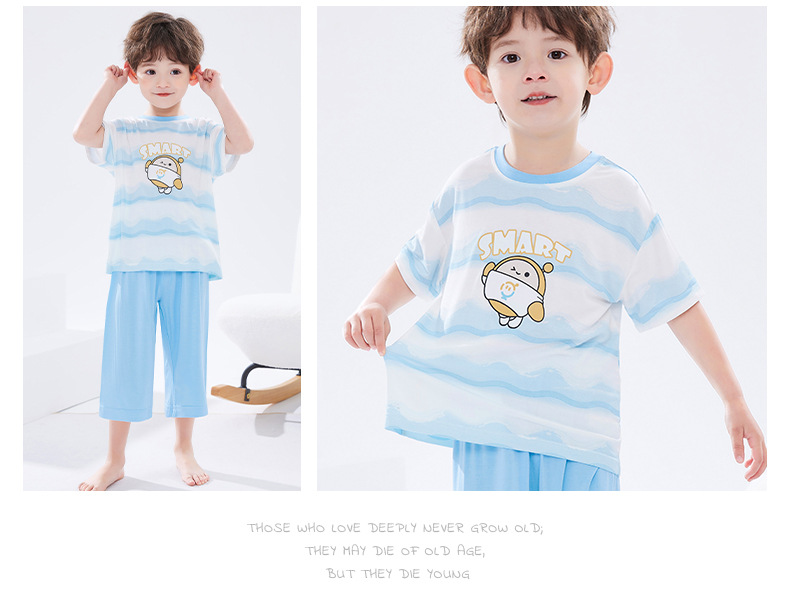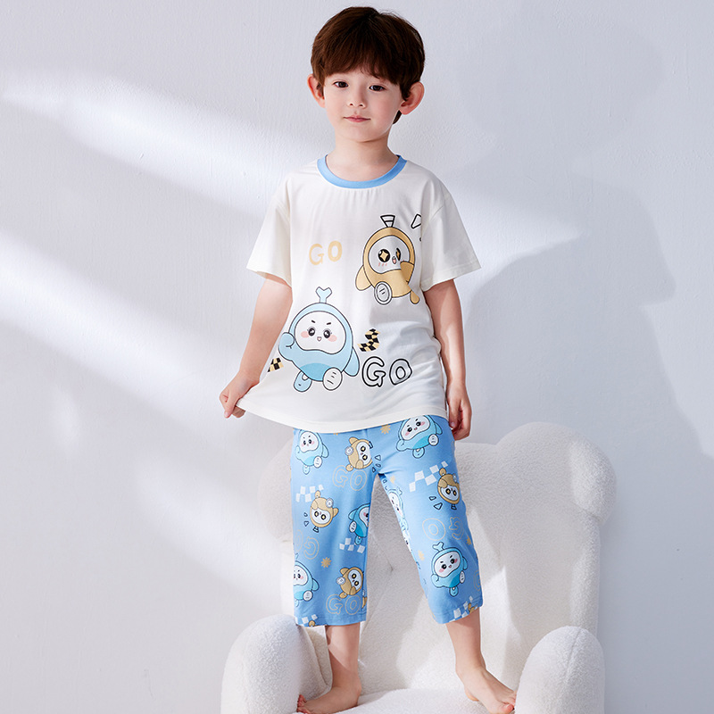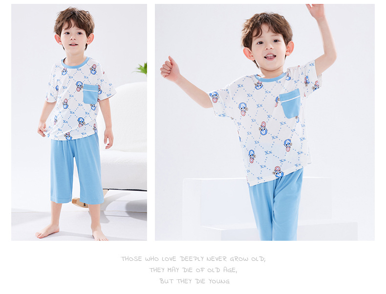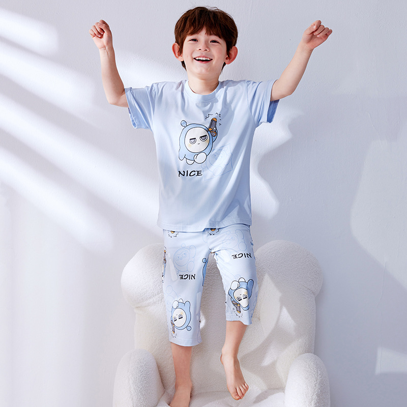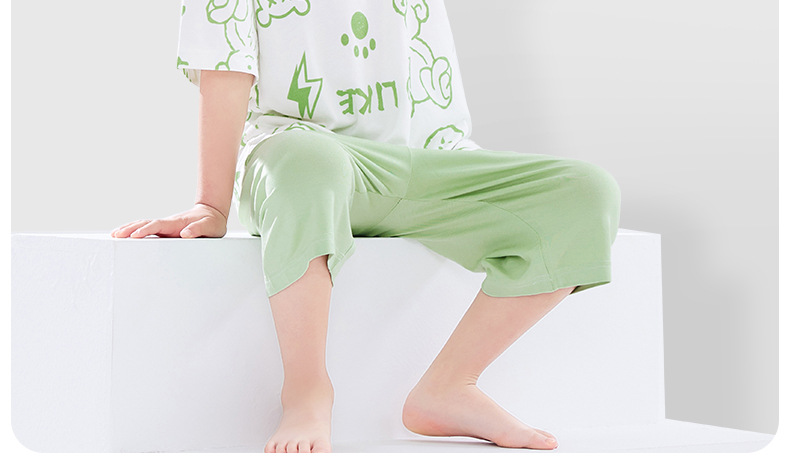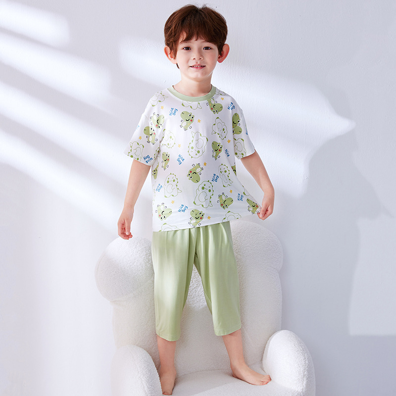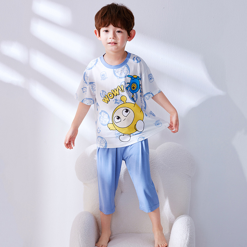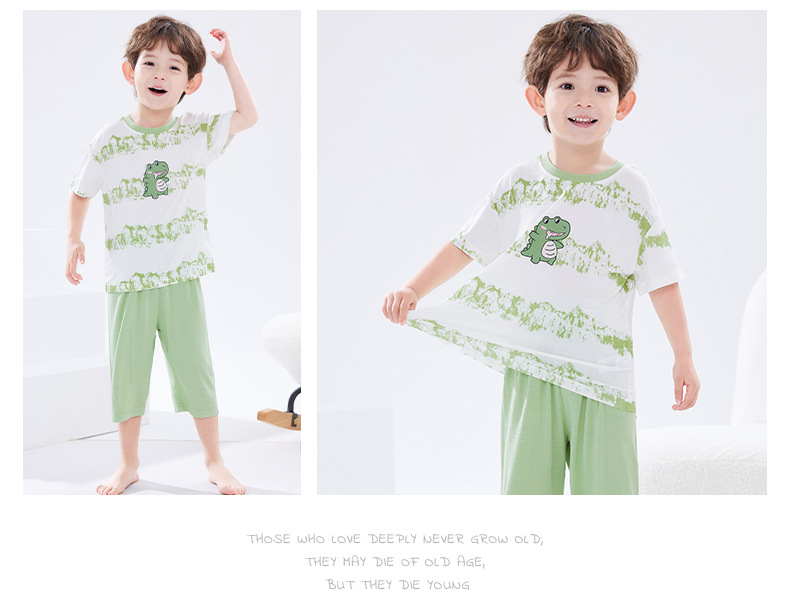 2025 어린이 잠옷 소년의 여름 얇은 모달 소년의 아기의 반팔 카프리 바지 유코시 홈 옷스토어 가기