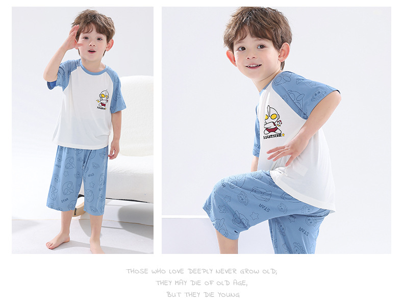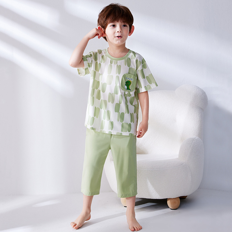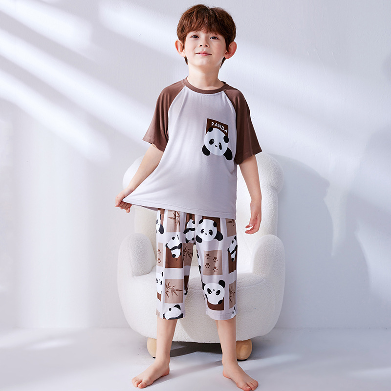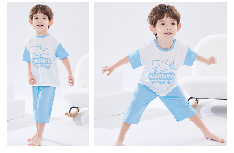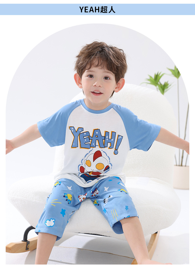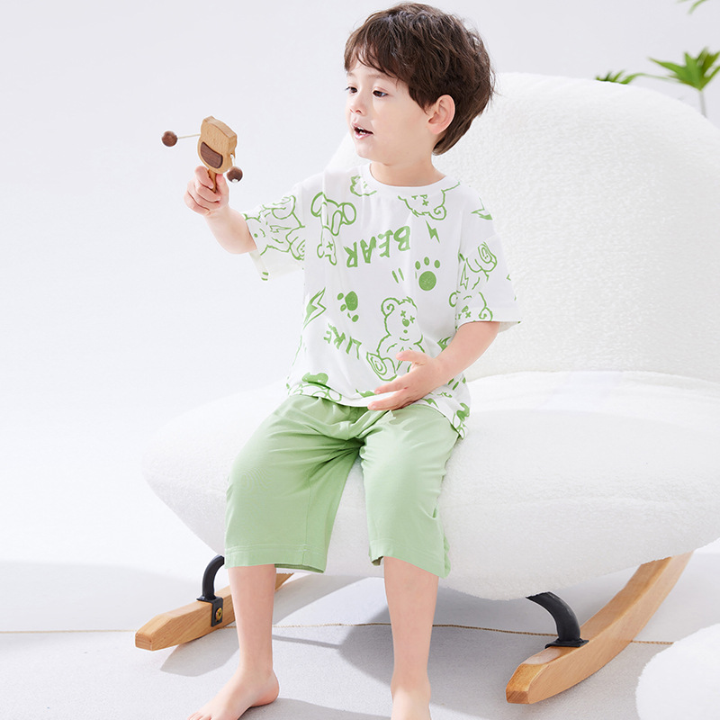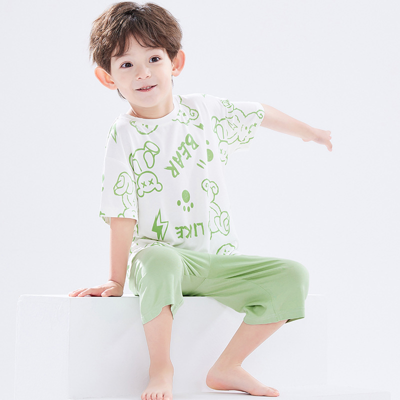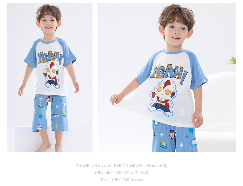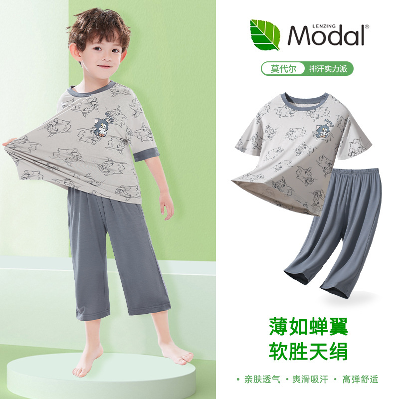 2025 어린이 잠옷 소년의 여름 얇은 모달 소년의 아기의 반팔 카프리 바지 유코시 홈 옷스토어 가기