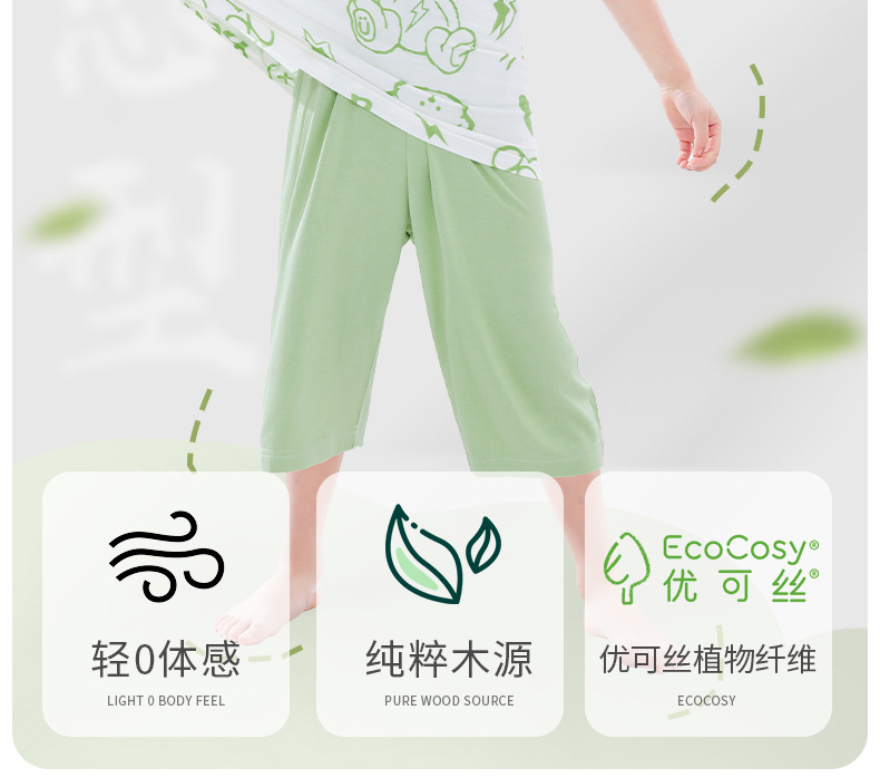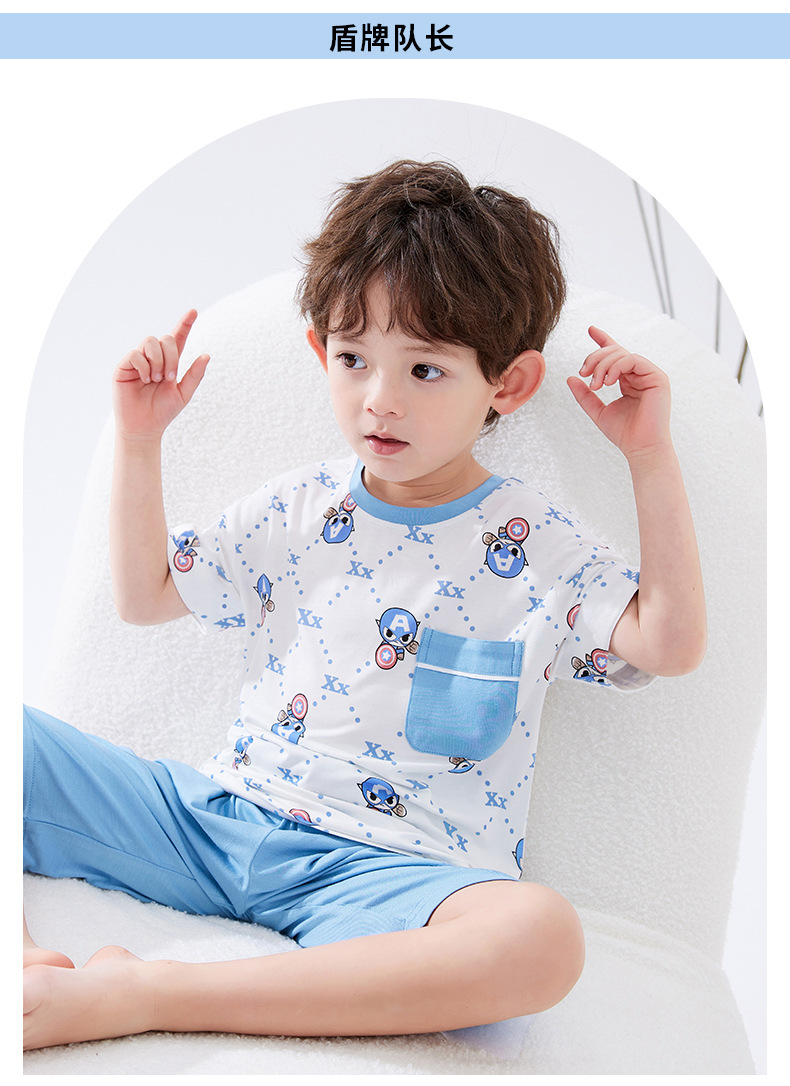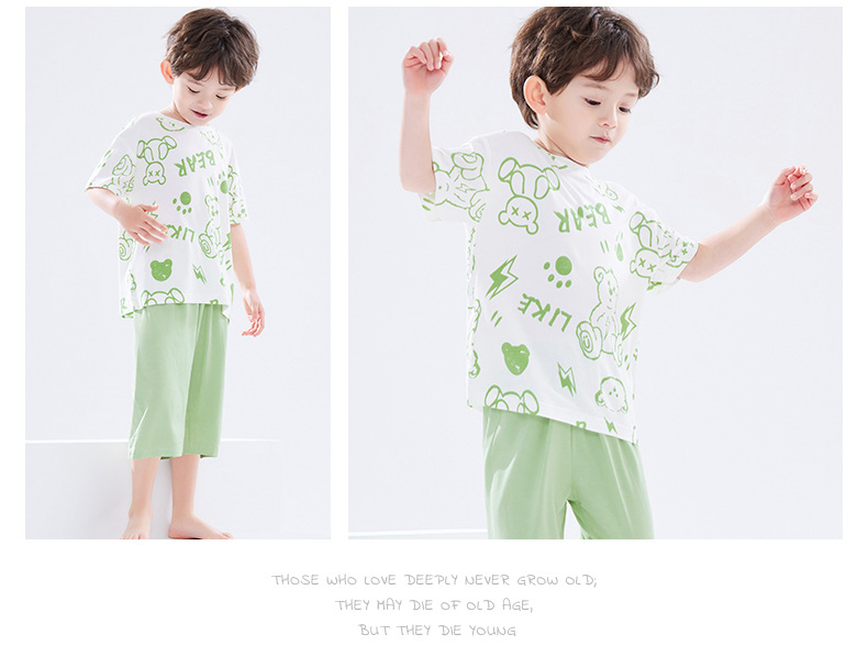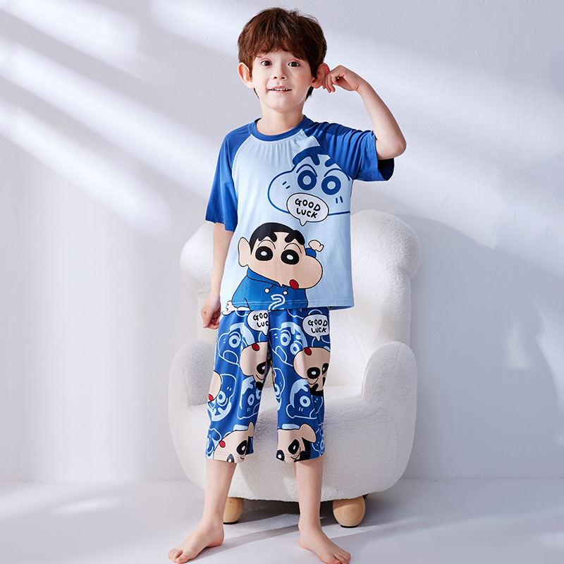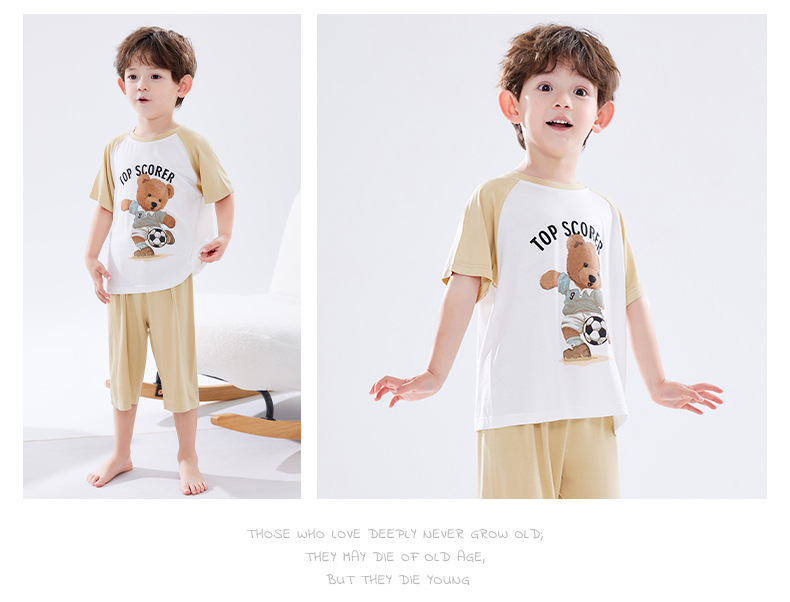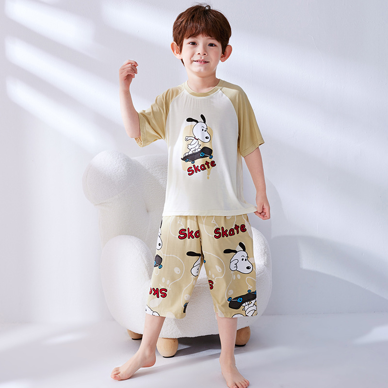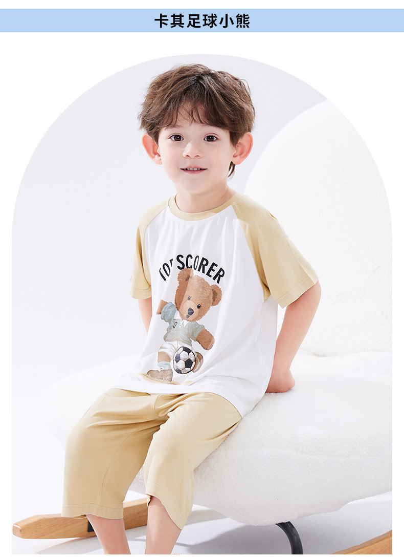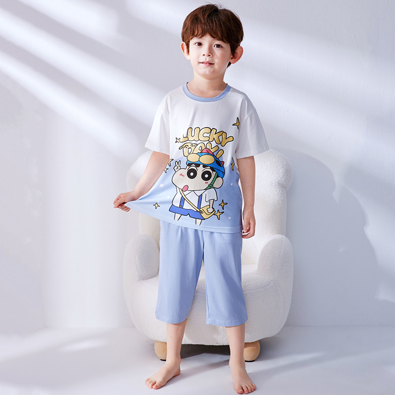 2025 어린이 잠옷 소년의 여름 얇은 모달 소년의 아기의 반팔 카프리 바지 유코시 홈 옷스토어 가기
