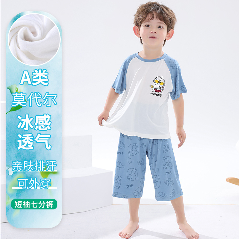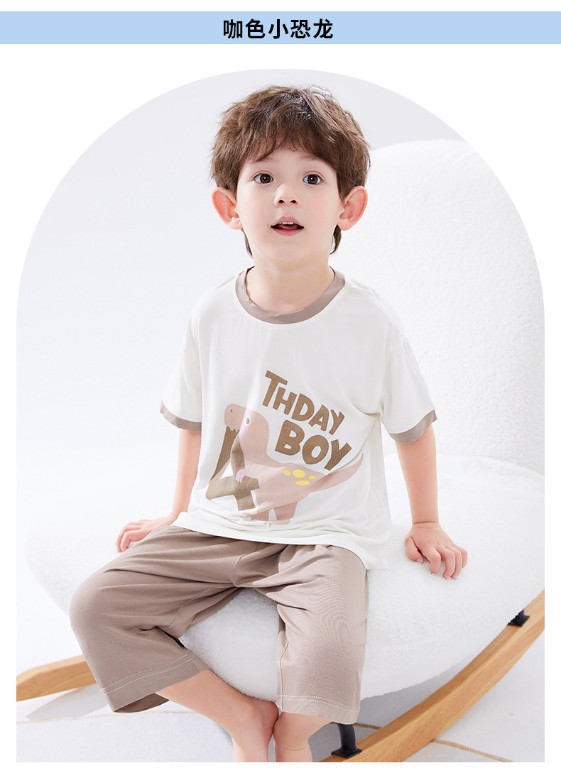 2025 어린이 잠옷 소년의 여름 얇은 모달 소년의 아기의 반팔 카프리 바지 유코시 홈 옷