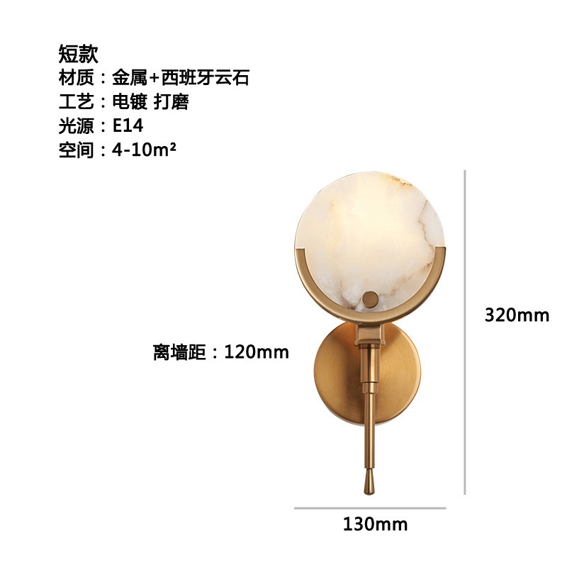 현대 간단한 빛 럭셔리 모든 구리 돌 창조적 인 예술 거실 TV 배경 벽 램프 북유럽 침실 램프
