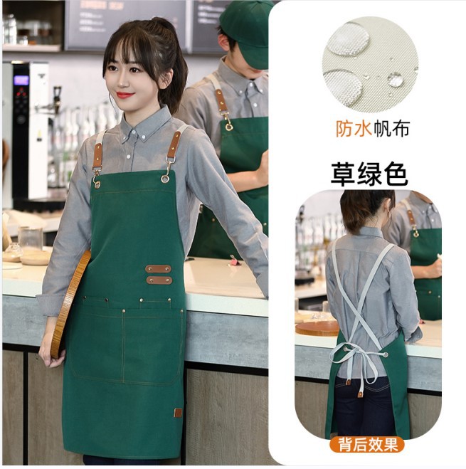 캔버스 앞치마 인쇄 로고 케이터링 특수 우유 차 가게 꽃 가게 커피 핫 다이어 방수 작업 옷 여성