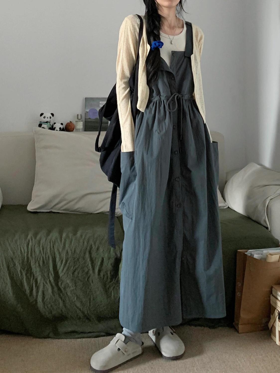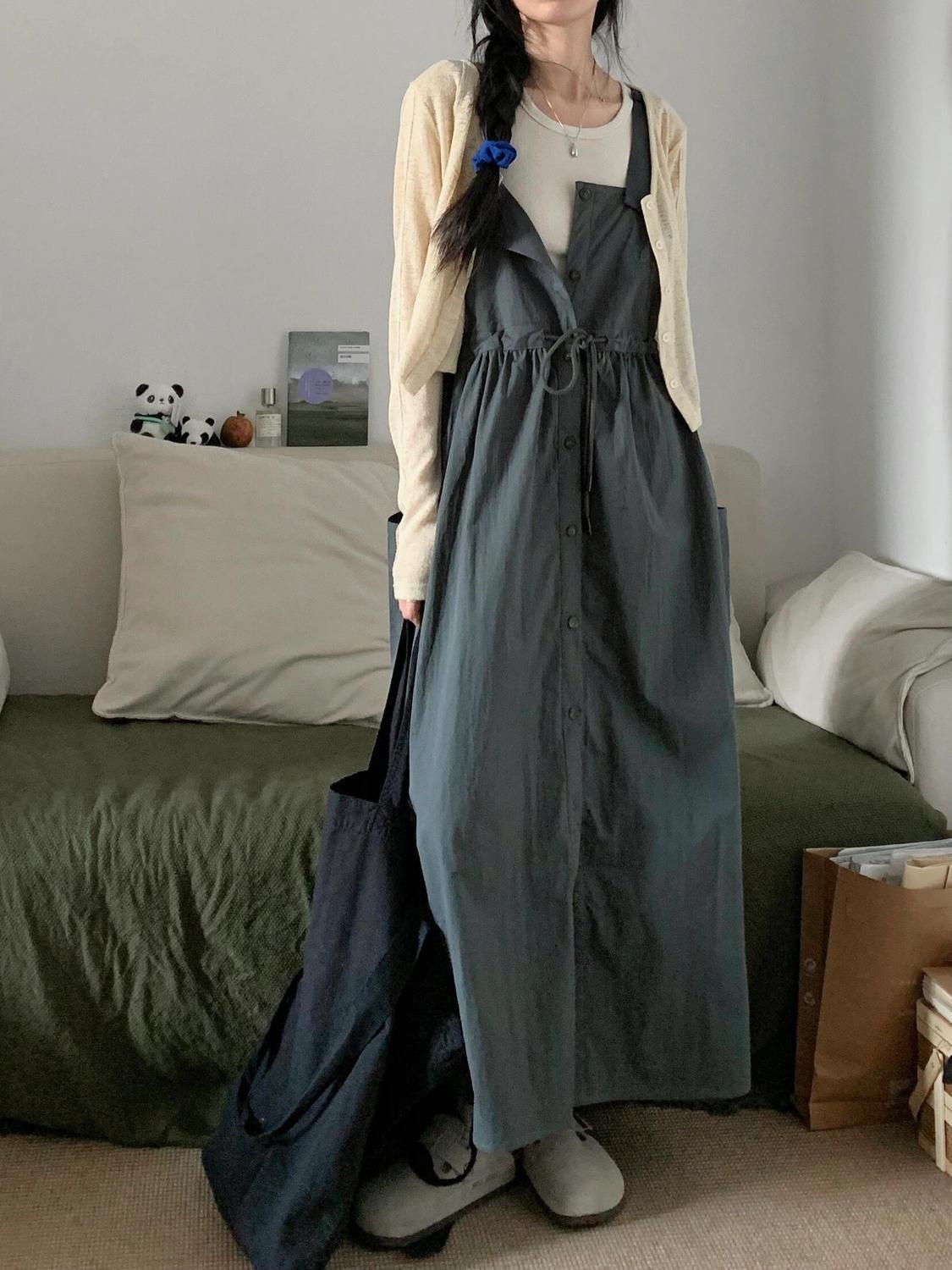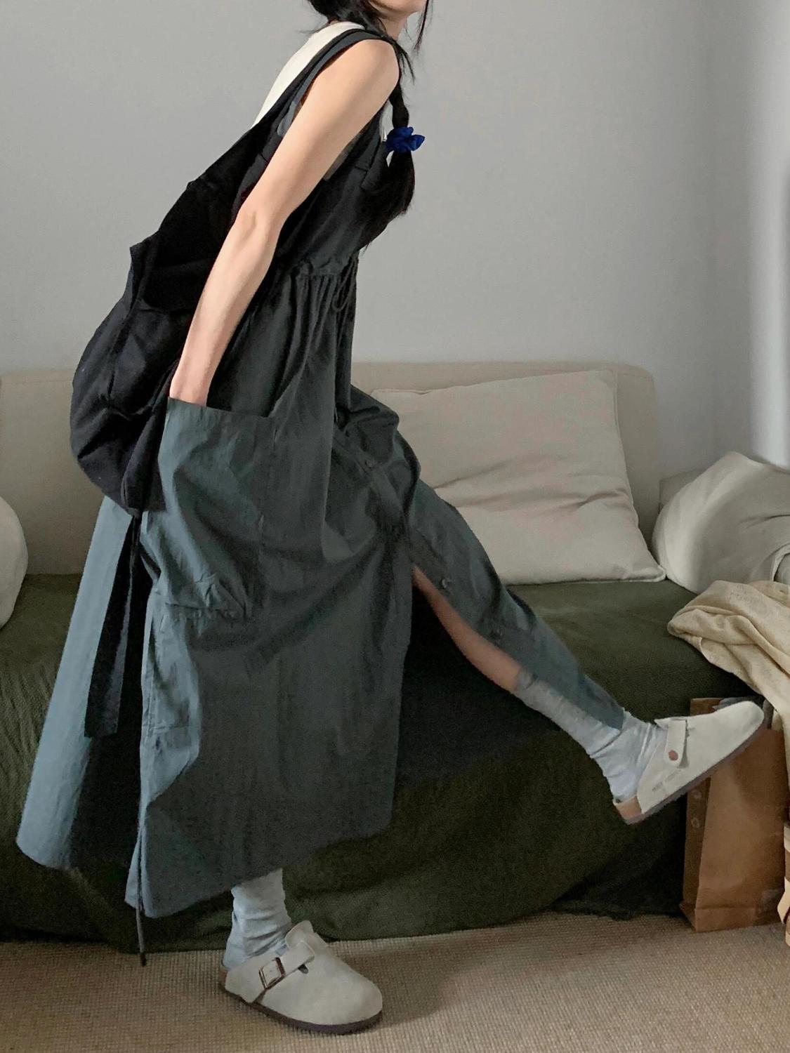 2024 여름 한국 스타일 패션 패션 유행 빈티지 작업 조끼 슬링 스커트 슬림 핏 슬링 조끼 투피스 세트