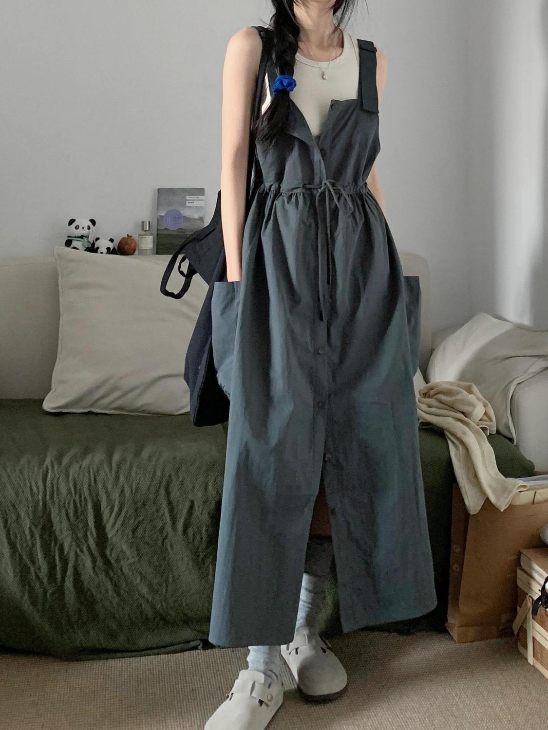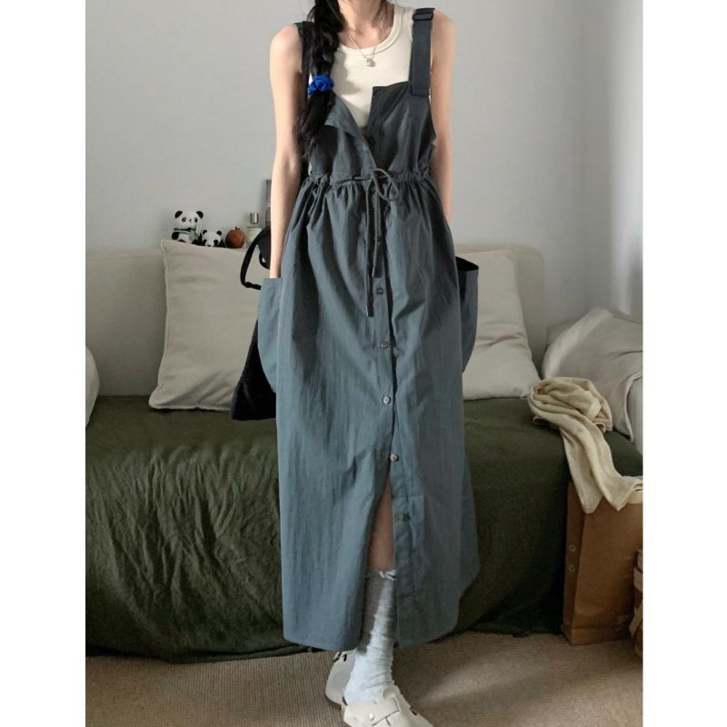 2024 여름 한국 스타일 패션 패션 유행 빈티지 작업 조끼 슬링 스커트 슬림 핏 슬링 조끼 투피스 세트스토어 가기