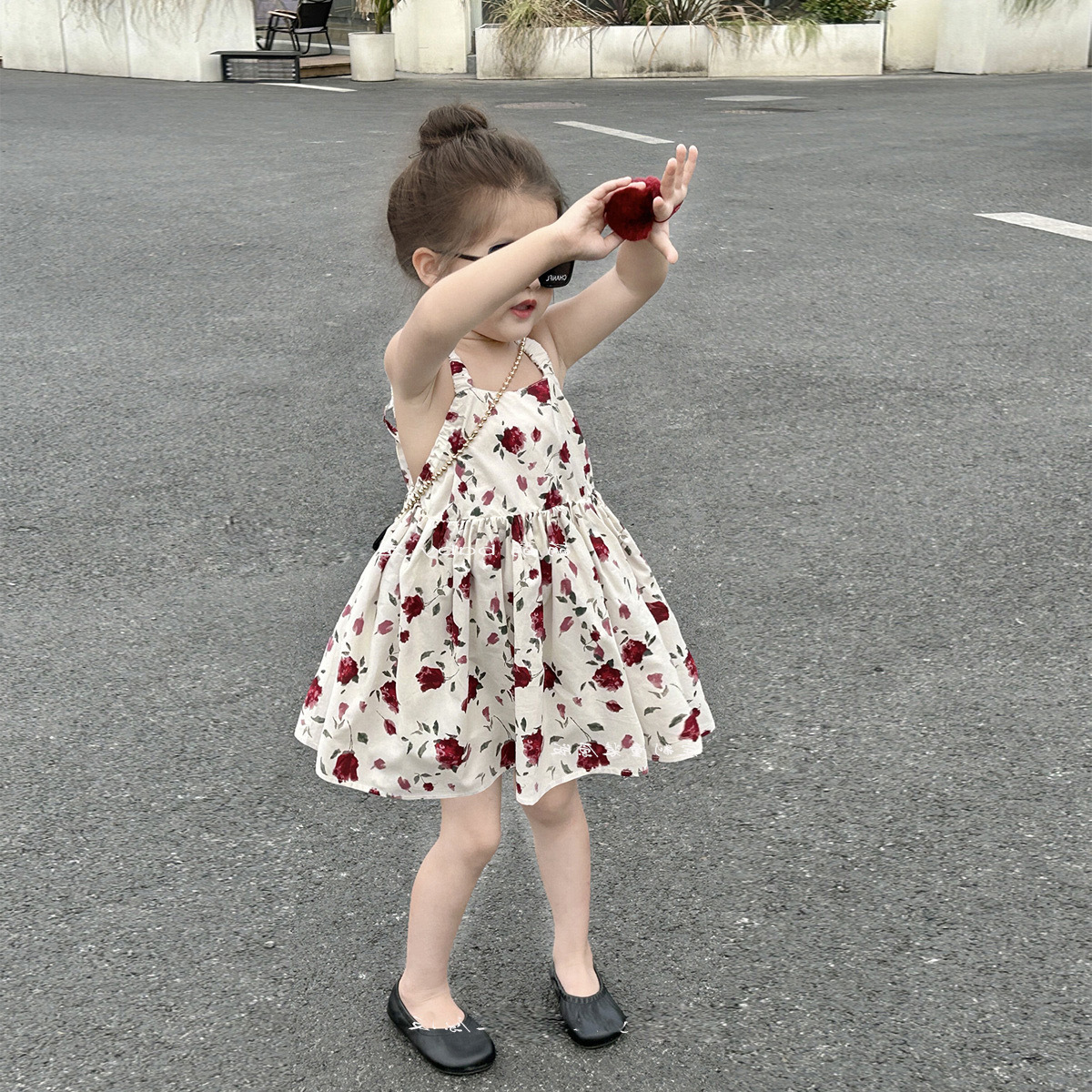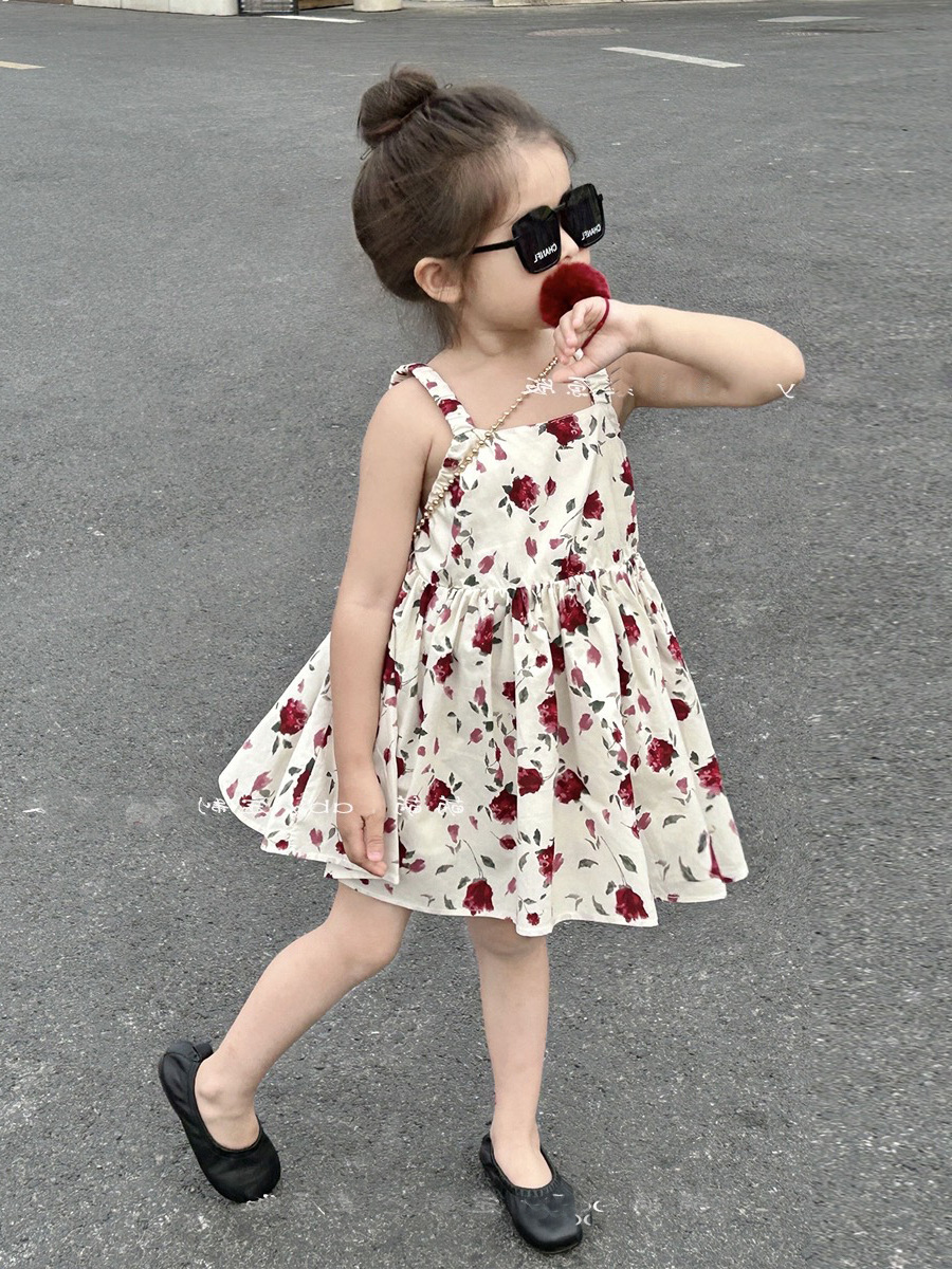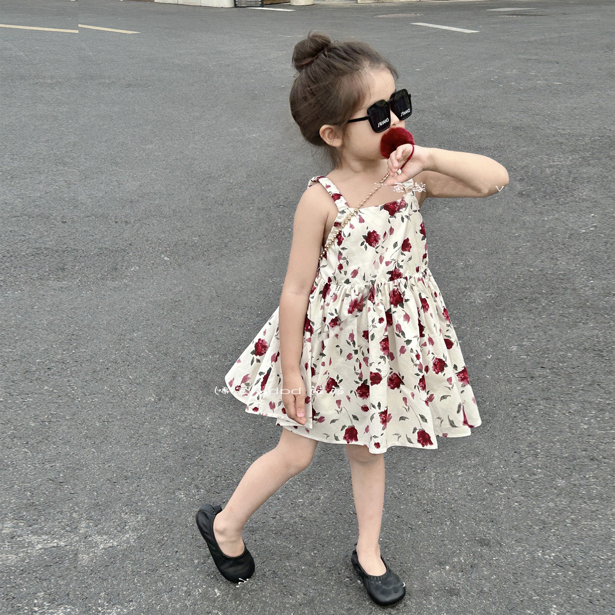 여자 원피스 여름 새로운 복고풍 휴가 스타일 한국어 버전의 멜빵 조끼 치마 어린이 한 세대 머리카락스토어 가기
