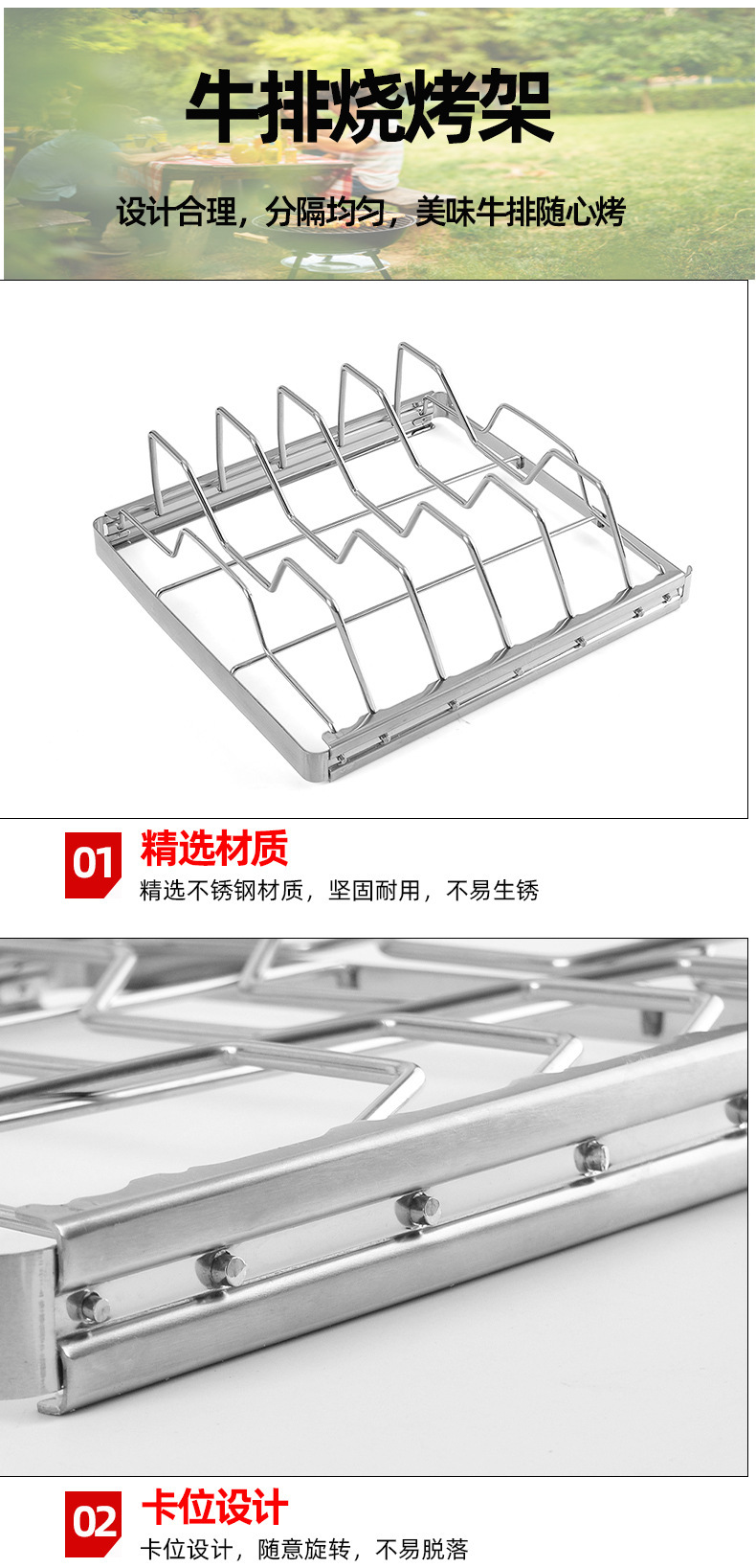 아마존 폭발성 휴대용 스테인레스 스틸 바베큐 도구 스테이크 선반 야외 안뜰 접히는 바베큐 랙