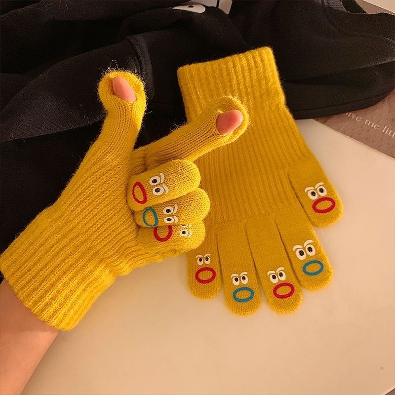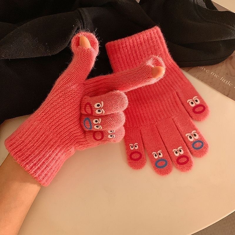 제조업체 입과 입 괴물 장갑 다섯 손가락 귀여운 한국식 양모 두꺼운 따뜻한 니트 장갑 사이클링 가을, 겨울 터치 스크린
