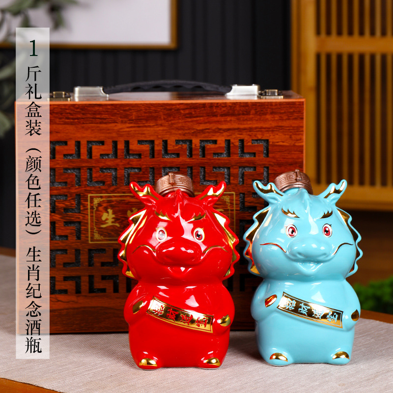 Jingdezhen 세라믹 와인 병 1kg 500 ml 12 조디악 드래곤 와인 냄비 선물 상자 와인 캐비닛 장식 빈 와인 병스토어 가기