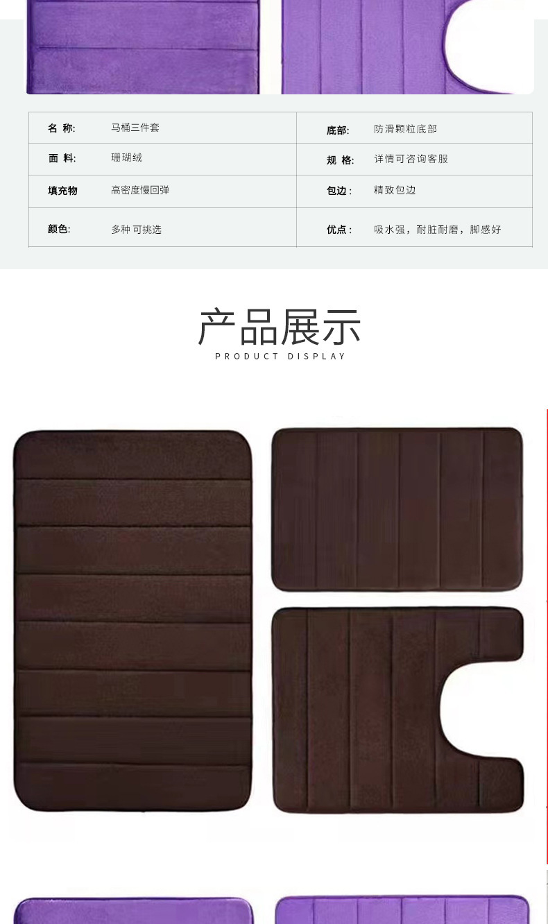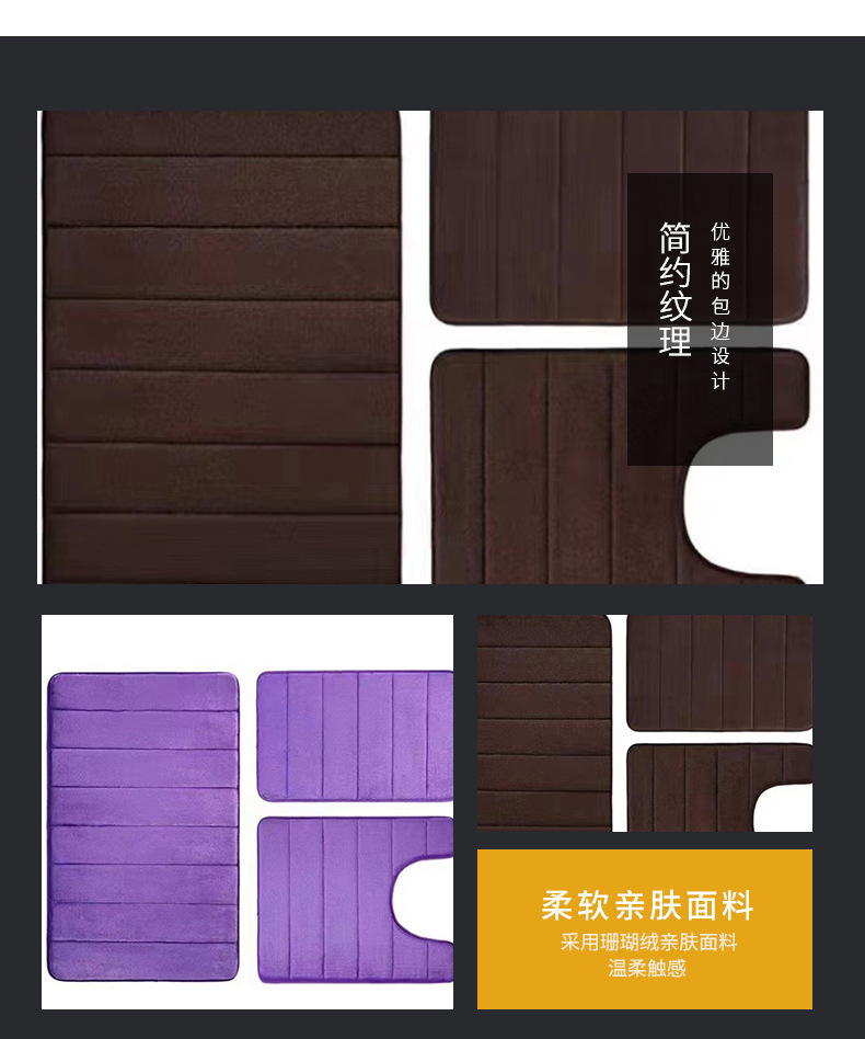 솔리드 컬러 화장실 3 피스 욕실 바닥 매트 욕실 흡수성 산호 양털 바닥 매트 화장실 문 페블 미끄럼 방지 매트