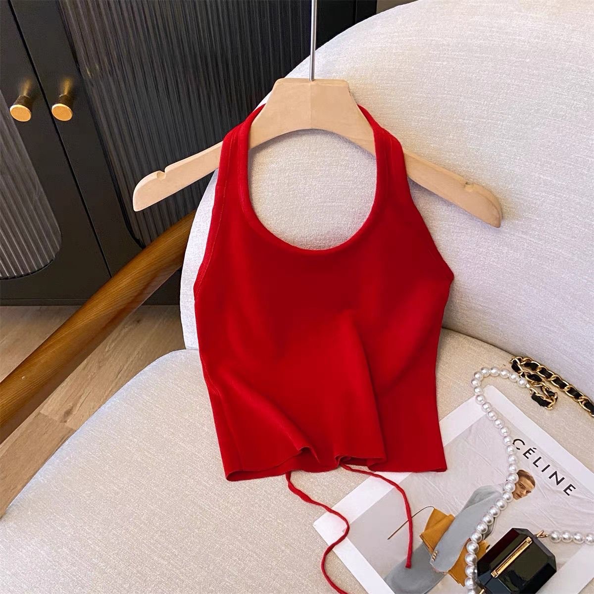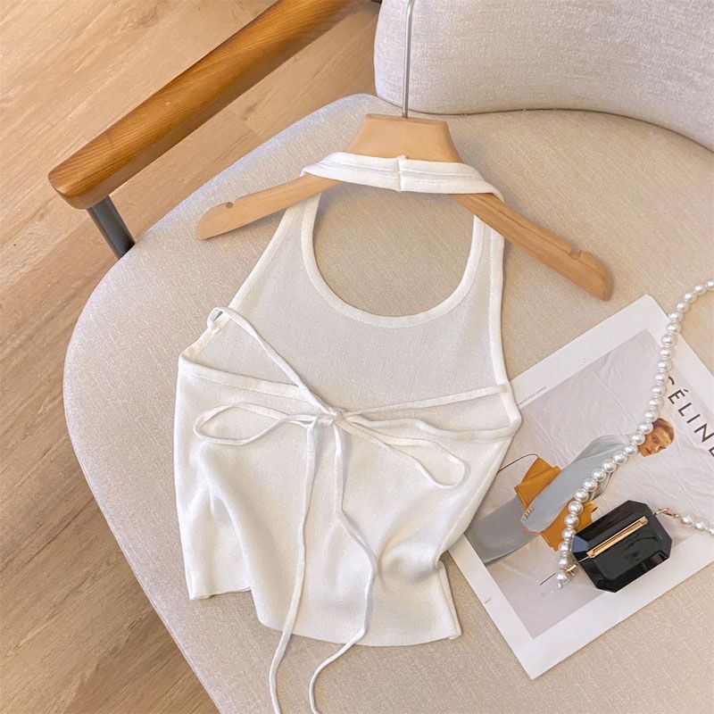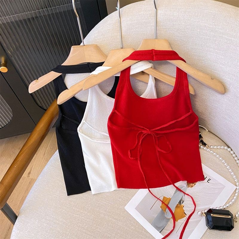 여아 아메리칸 스타일 달콤하고 매콤한 스트랩 홀터넥 탑 여아 26 여름 신상 한국 스타일 백리스 민소매 조끼 탑스토어 가기