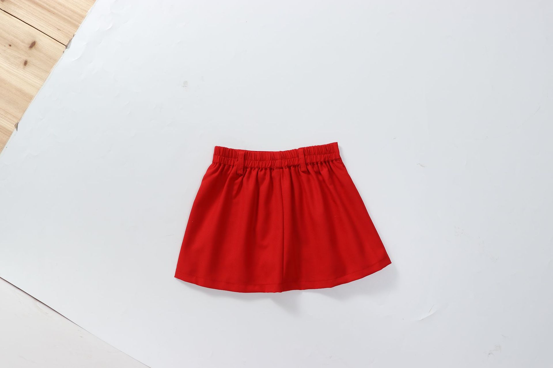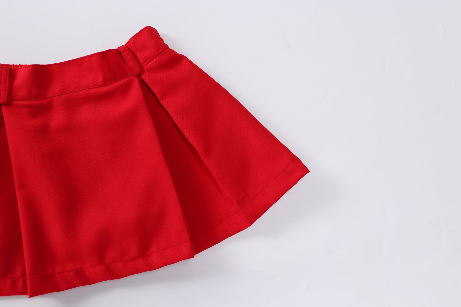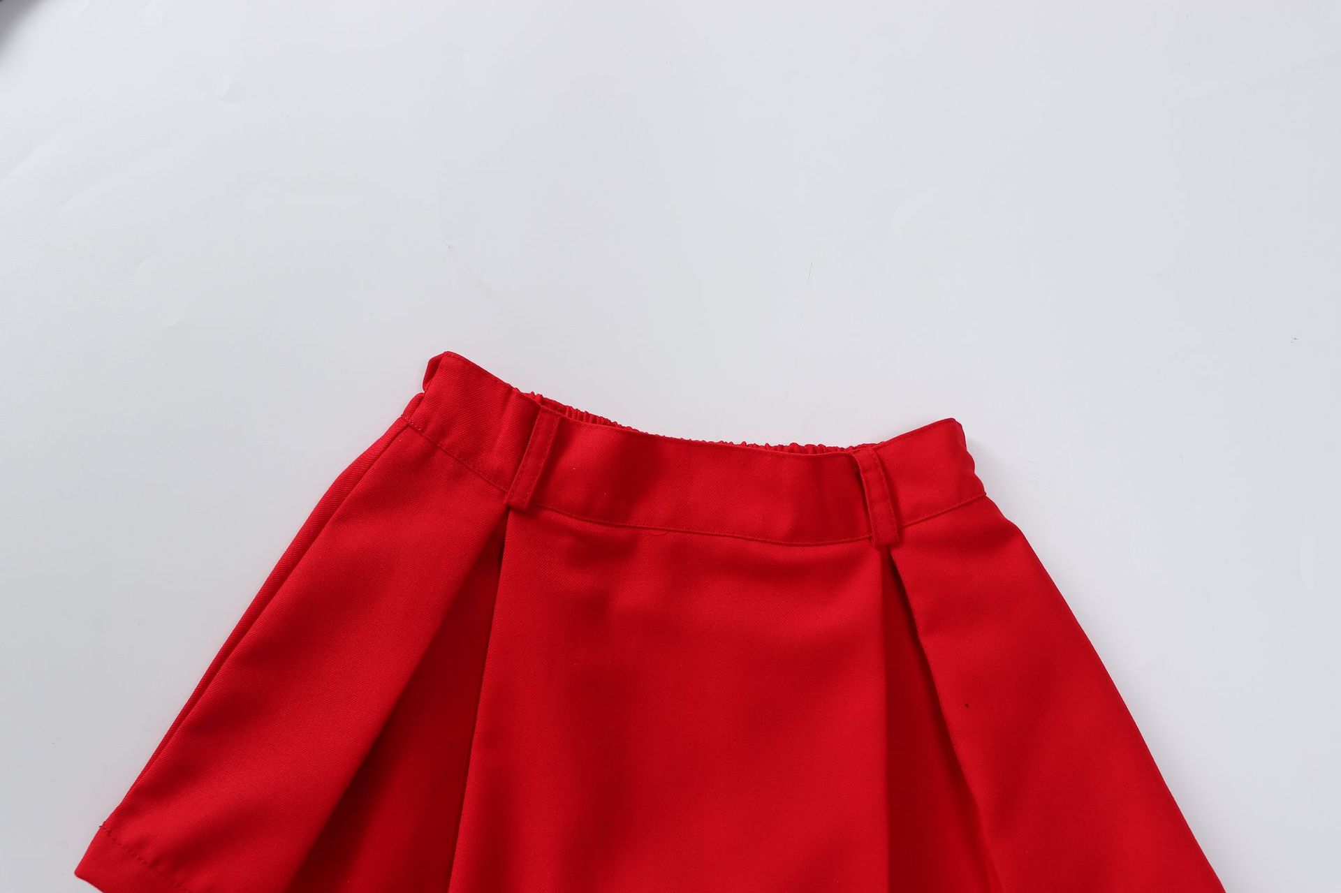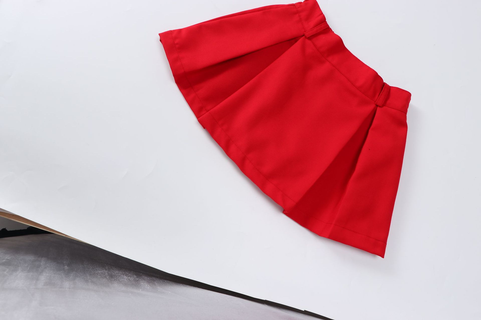 • 【창고 대방출】 레드 2406 더블 플리츠 H라인 스커트