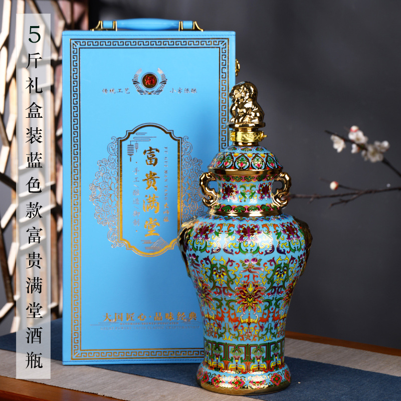 Jingdezhen 세라믹 크리에이티브 5 진 리치 풀 하우스 클로이손 빈 와인 병 5 진 팩 선물 상자 혁신적인 와인 제단