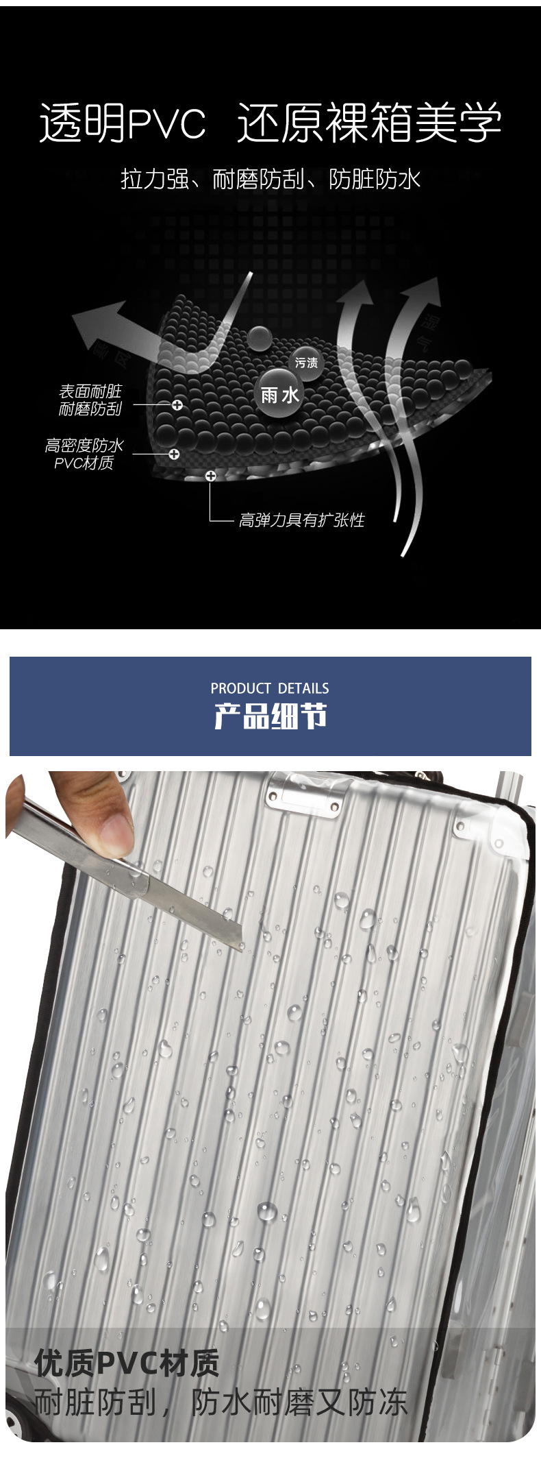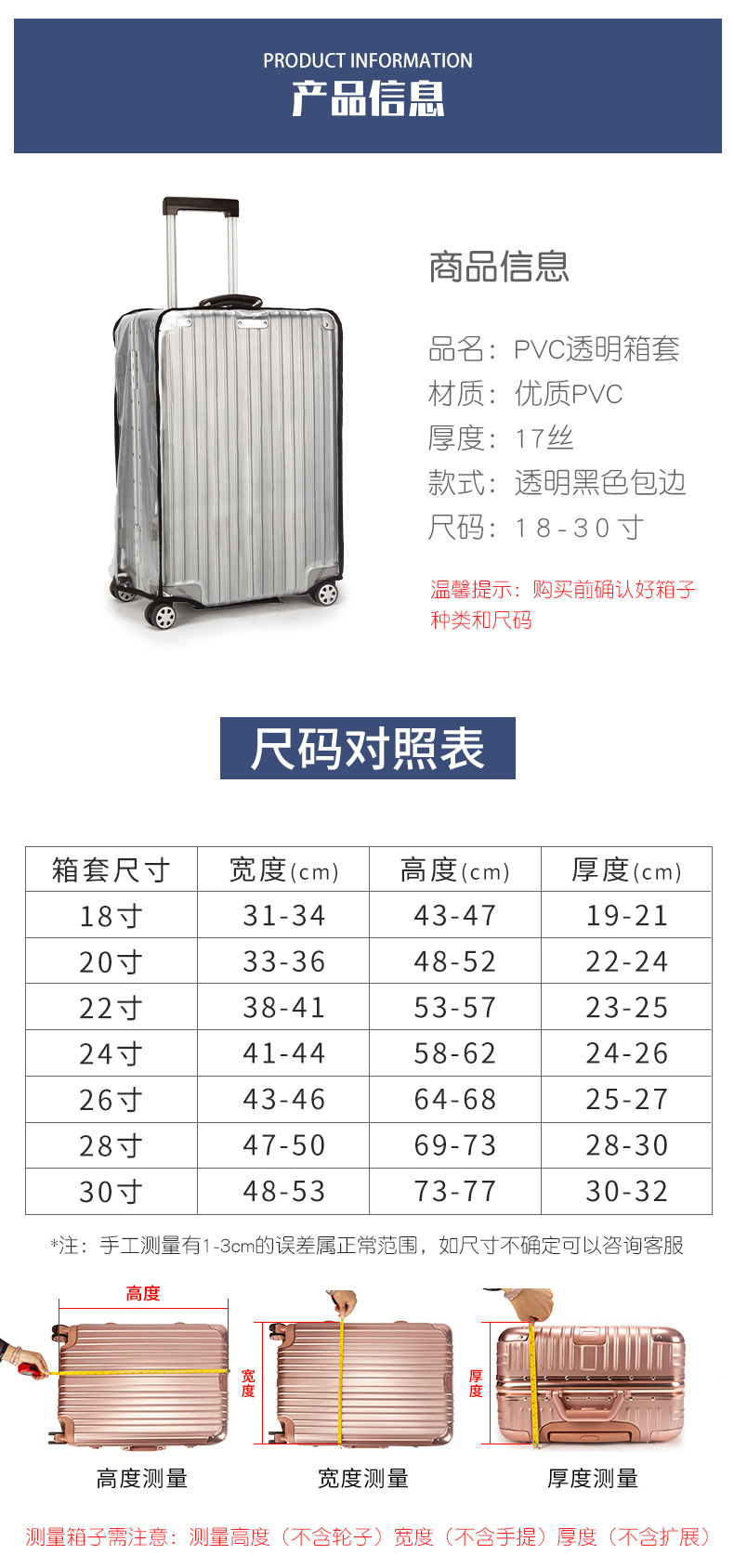 국경 간 전자 상거래 17 실크 가장자리 트롤리 케이스 수하물 케이스 보호 커버 투명 PVC 가방 먼지 커버