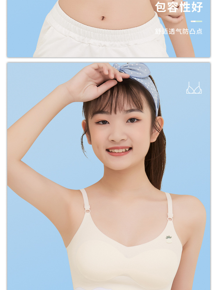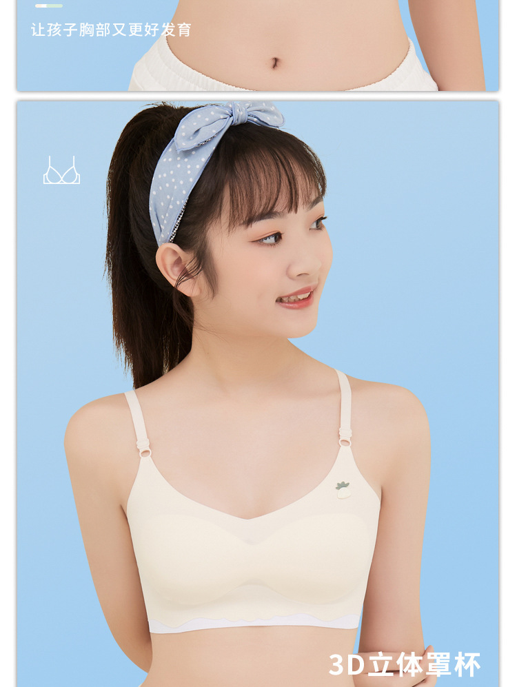 순수 코튼 걸스 속옷 청소년 슬링 속옷 통합 고정 컵 조정 가능한 어깨 끈 주니어 고등학교 학생 브래지어