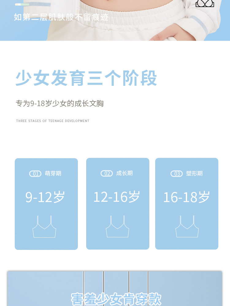 순수 코튼 걸스 속옷 청소년 슬링 속옷 통합 고정 컵 조정 가능한 어깨 끈 주니어 고등학교 학생 브래지어스토어 가기