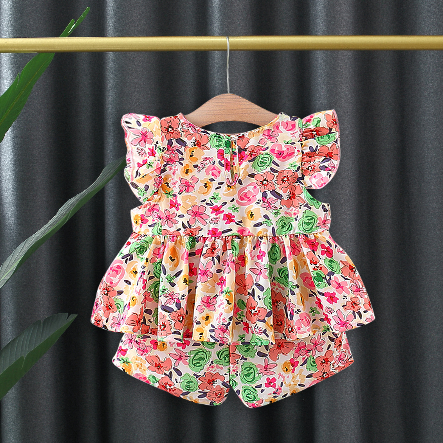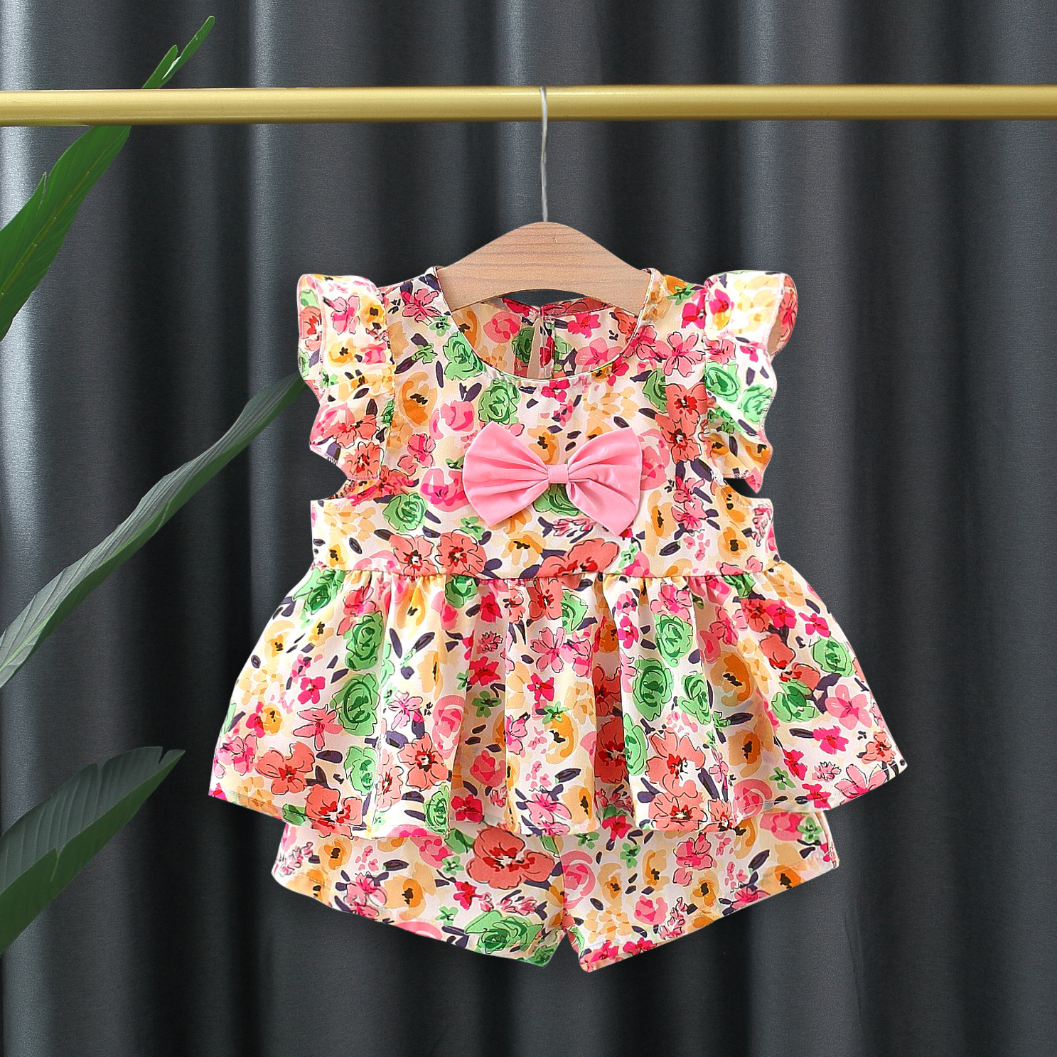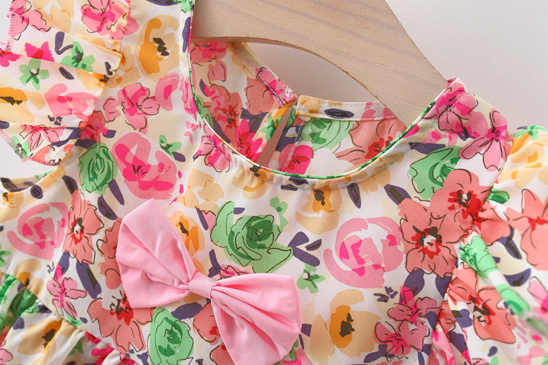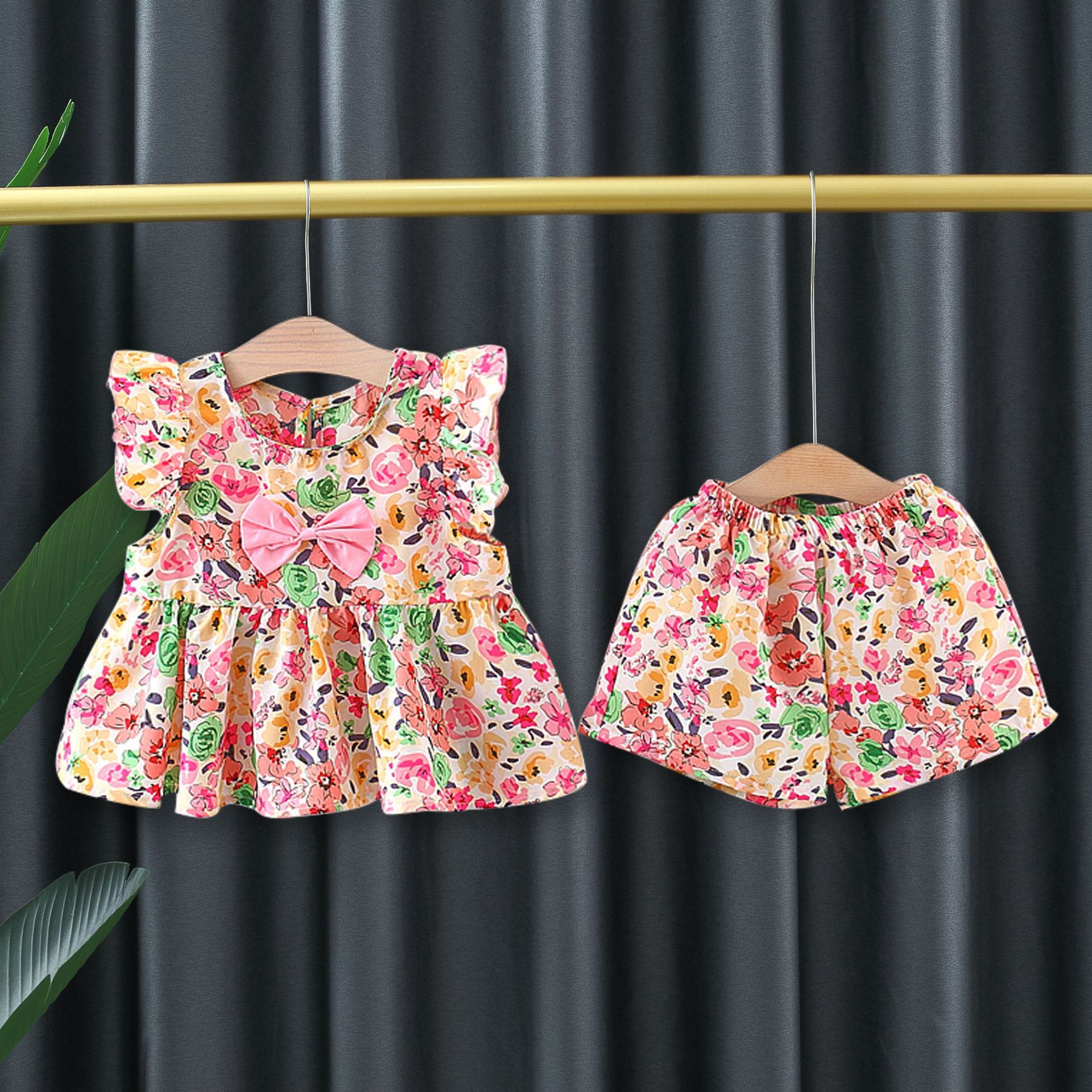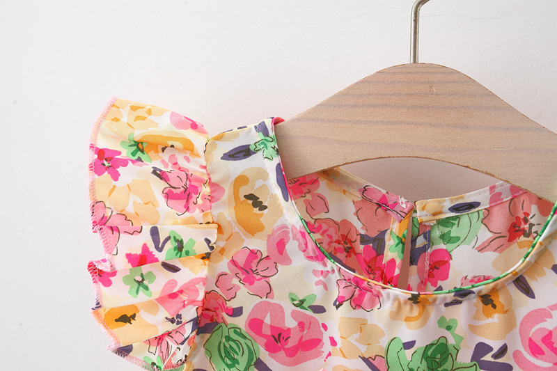 여자 여름 투피스 비행 소매 꽃 세트 인터넷 인기 어린이 한국 스타일 서양식 아기 소녀의 여름 패션 4649