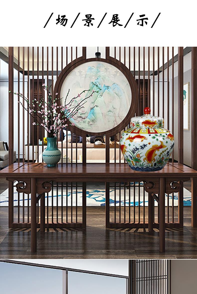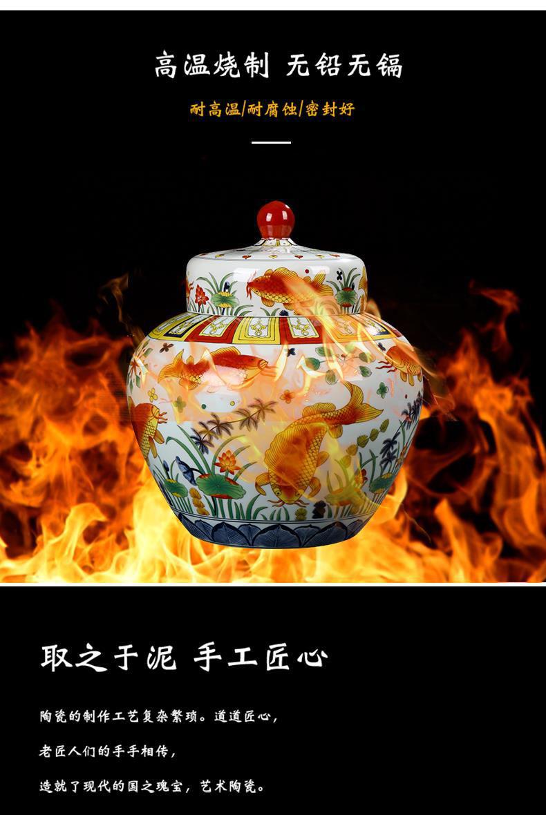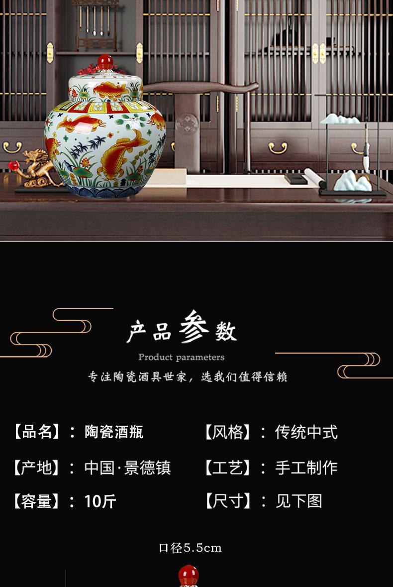 Jingdezhen 골동품 세라믹 와인 병 10kg 물고기 조류 패턴 봉인 된 와인 항아리 10kg 다채로운 뚜껑 항아리 화이트 와인 항아리스토어 가기