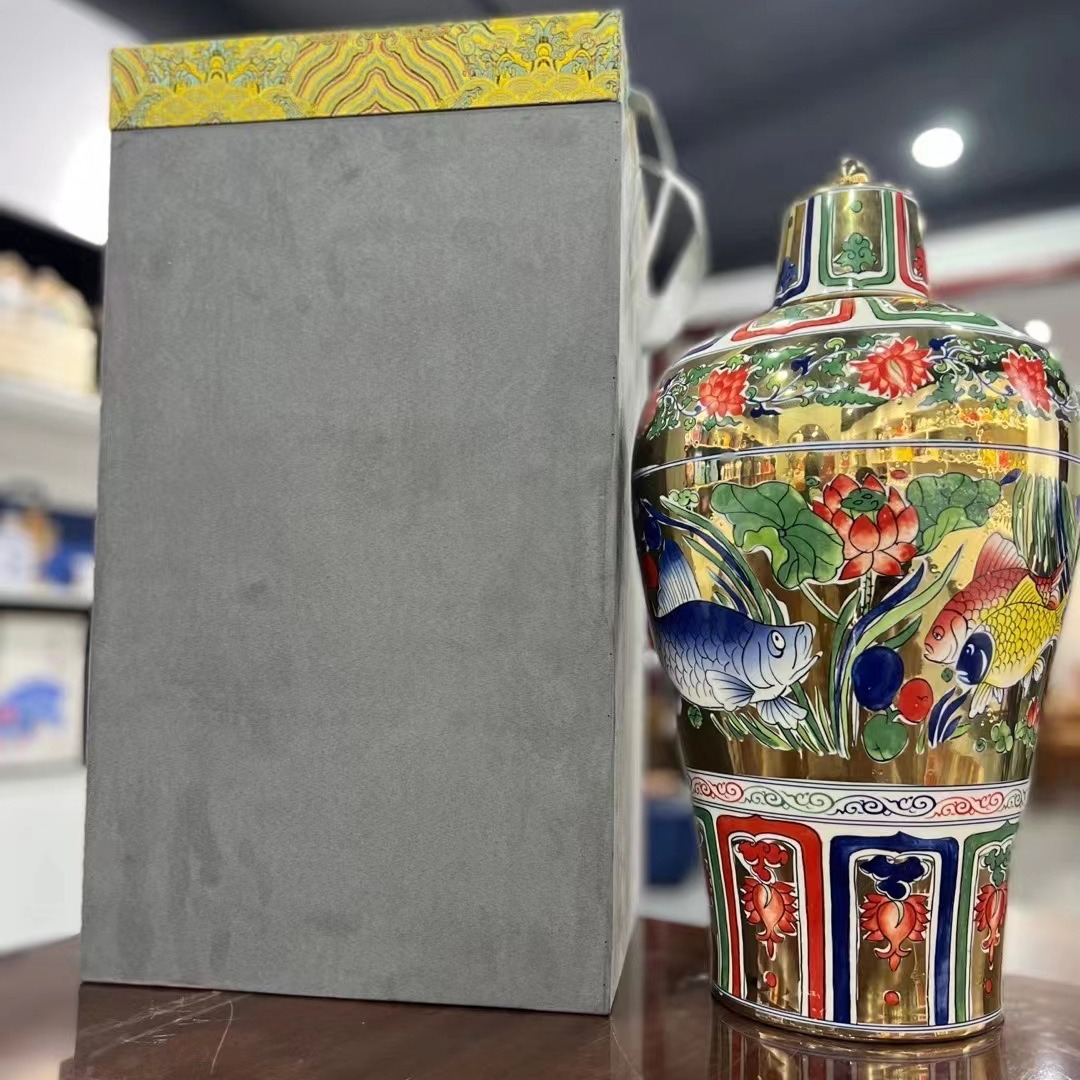 Jingdezhen Ming Yuzao 패턴 매화 병 20kg 선물 상자 봉인 와인 항아리 와인 항아리 와인 와인 와인과 함께 세라믹 와인 병스토어 가기